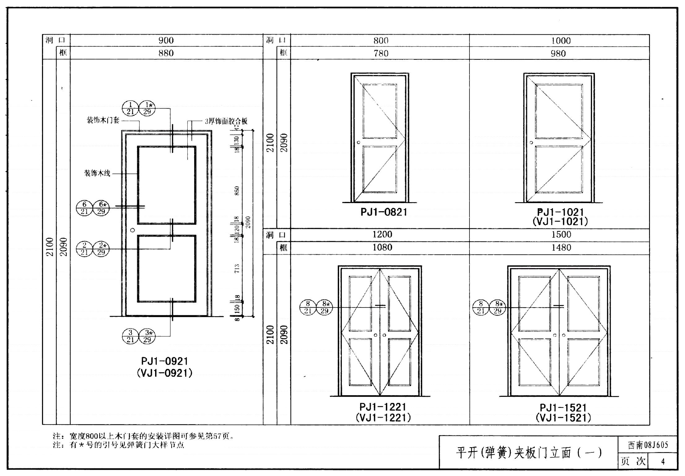 西南08J605 室内装饰木门构造图集
