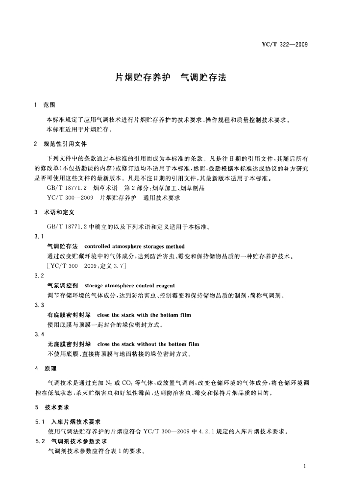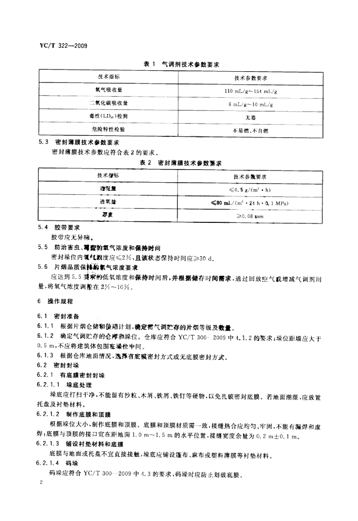 YC/T 322-2009 片烟贮存养护气调贮存法