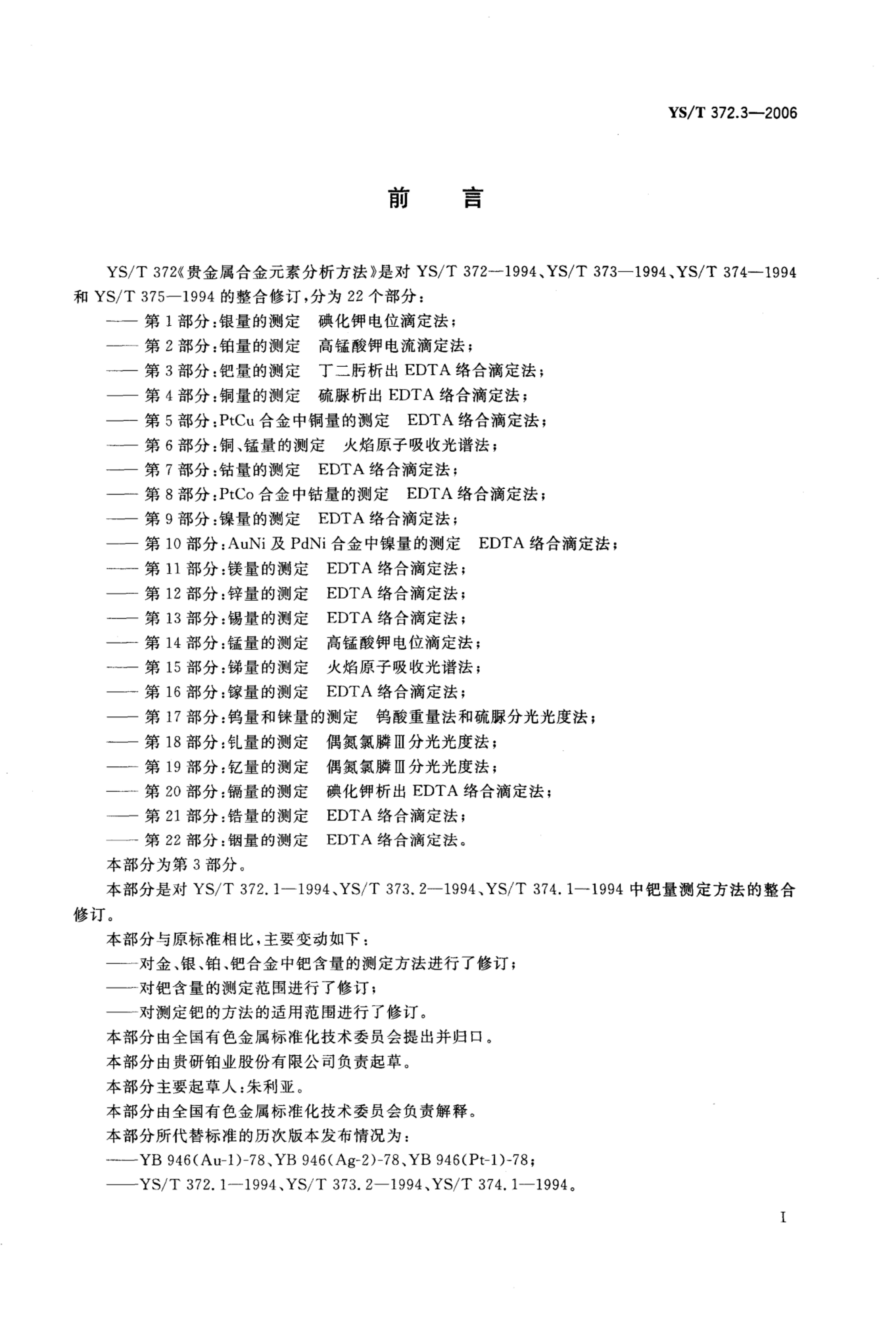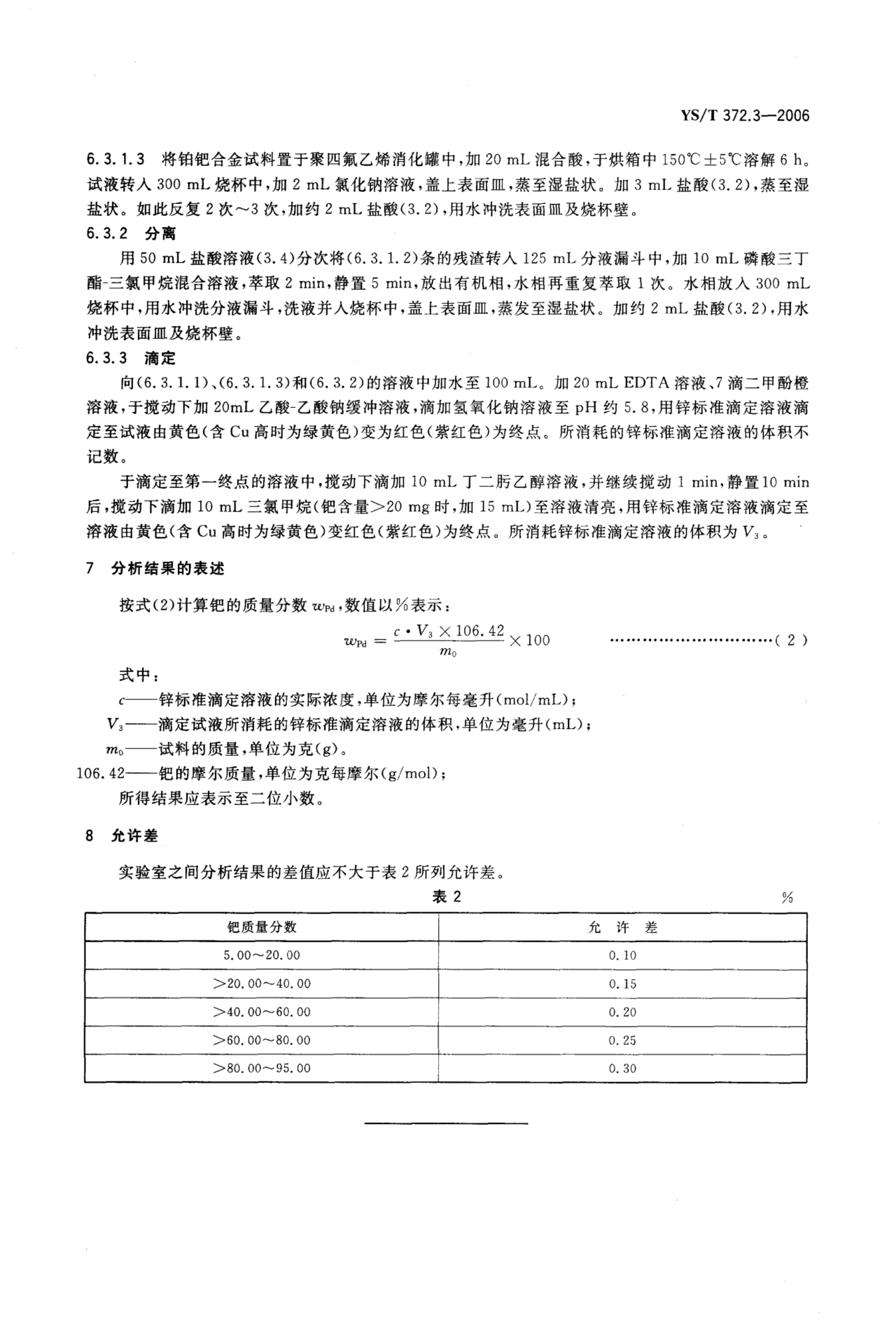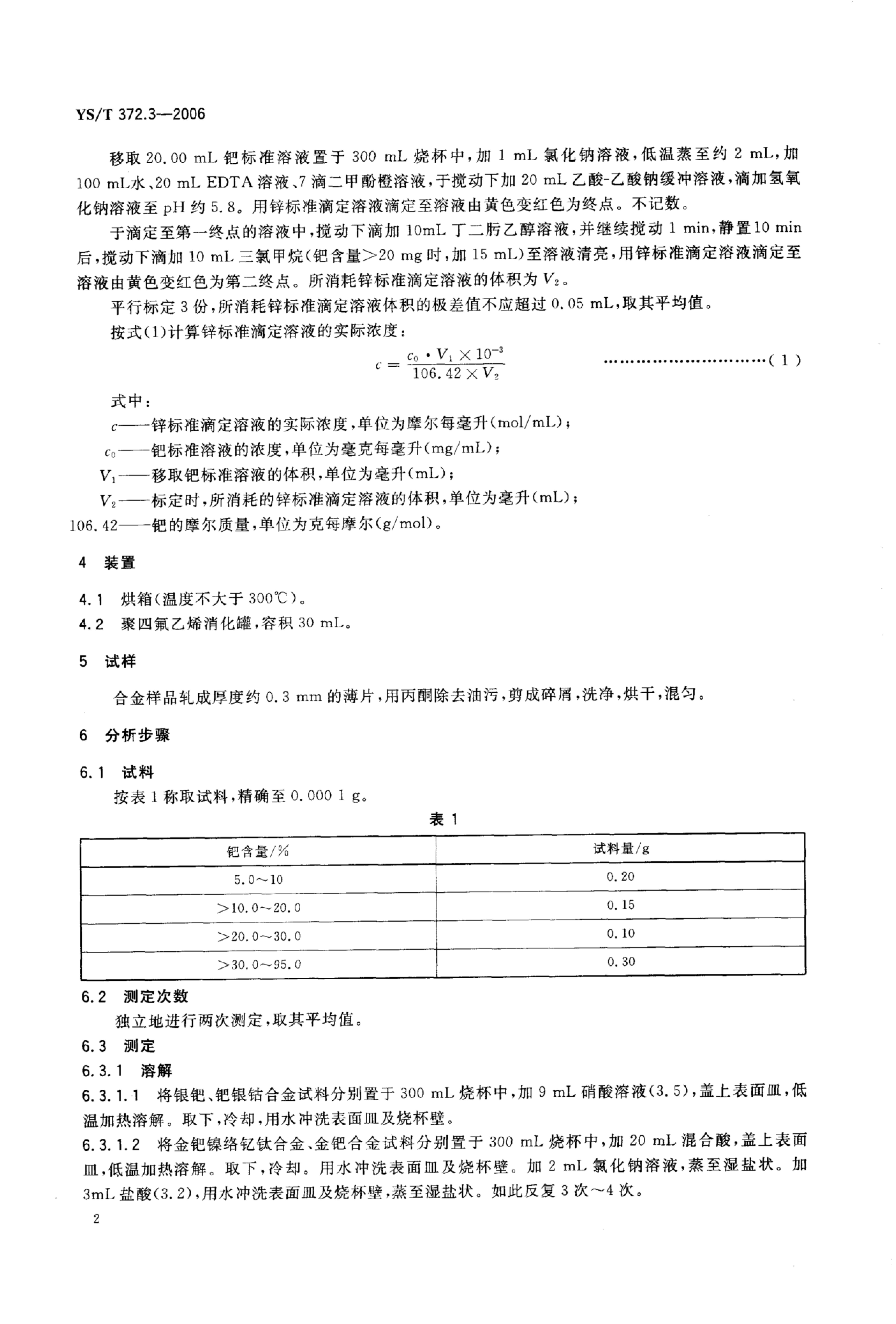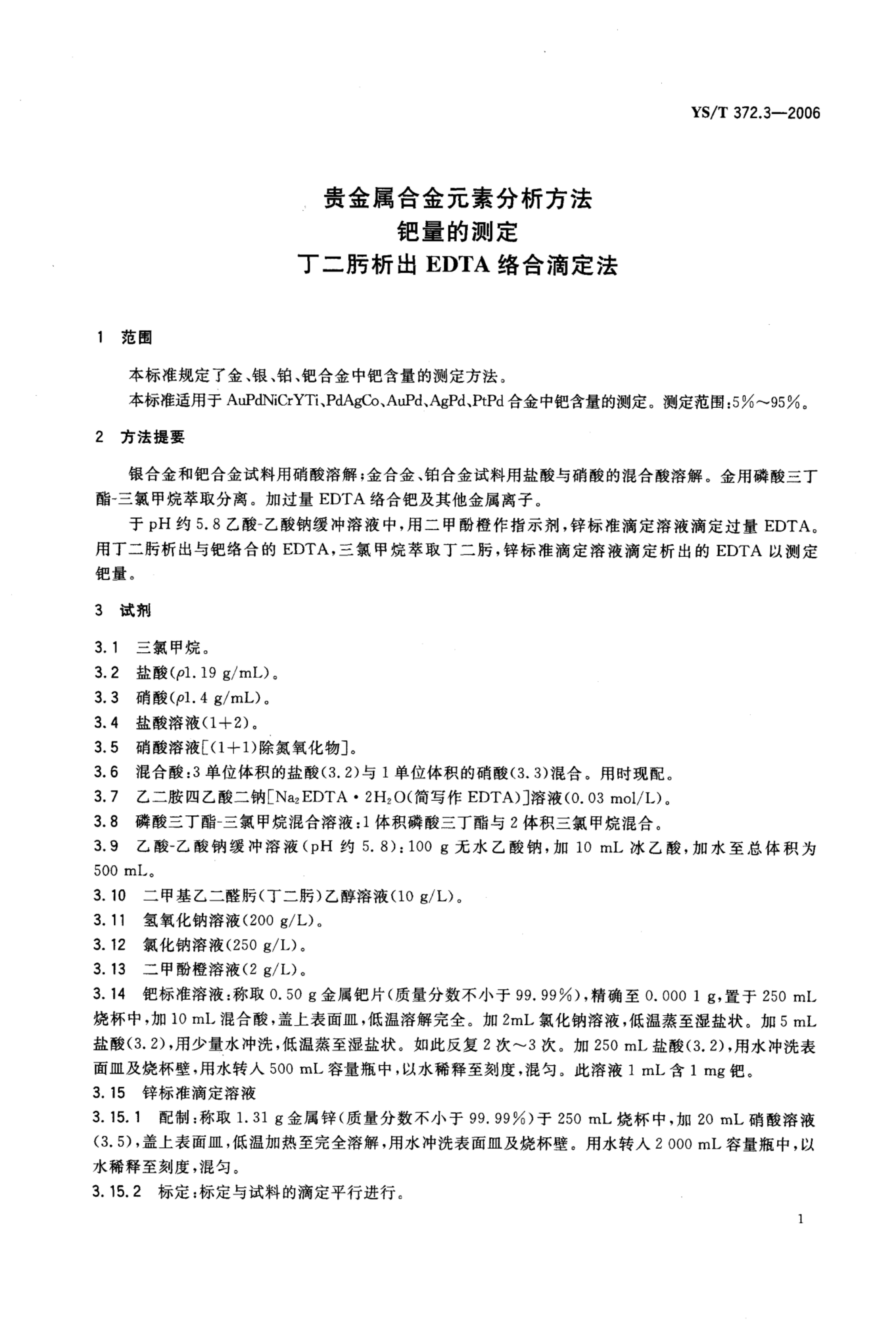YS/T 372.3-2006 贵金属合金元素分析方法 钯量的测定丁二肟析出EDTA络合滴定法