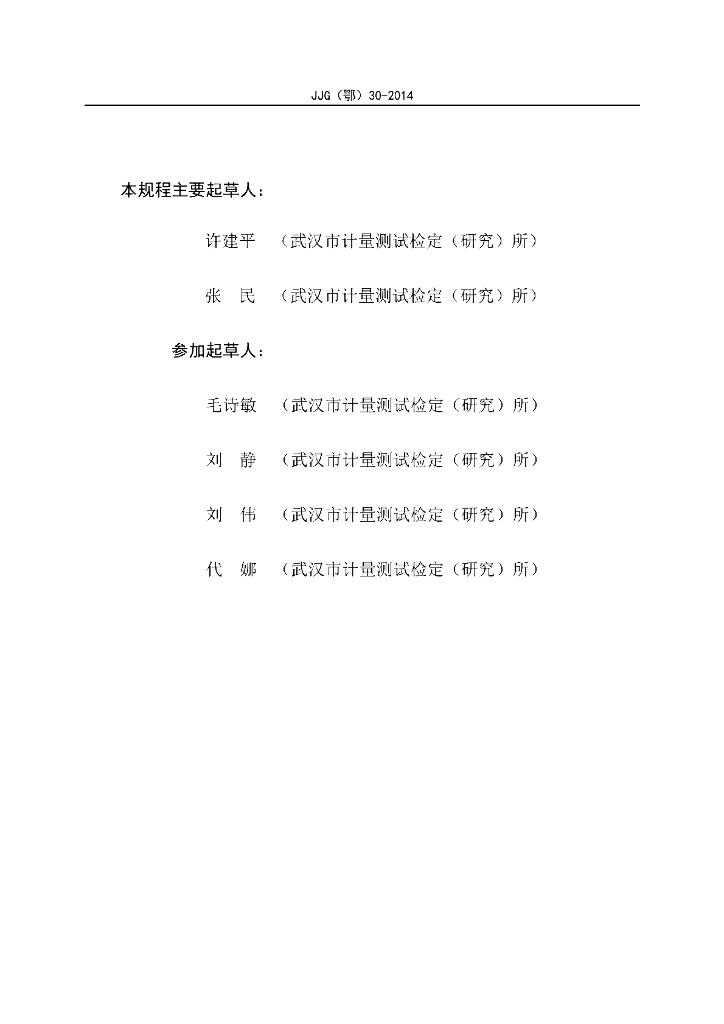 许建平(武汉市计量测试检定(研究)所)、张民(武汉市计量测试检定(研究)所)、毛诗敏(武汉市计量测试检定(研究)所)、刘静(武汉市计量测试检定(研究)所)、刘伟(武汉市计量测试检定(研究)所)、代娜(武汉市计量测试检定(研究)所)