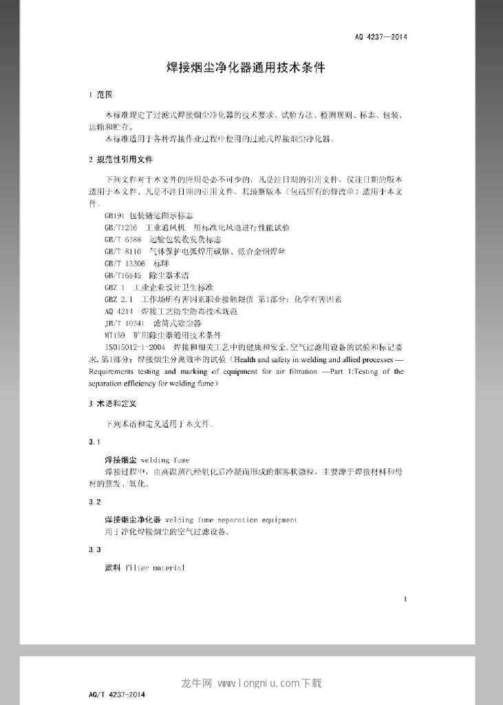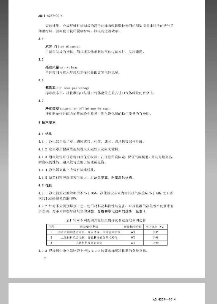 AQ/T 4237-2014 焊接烟尘净化器通用技术条件