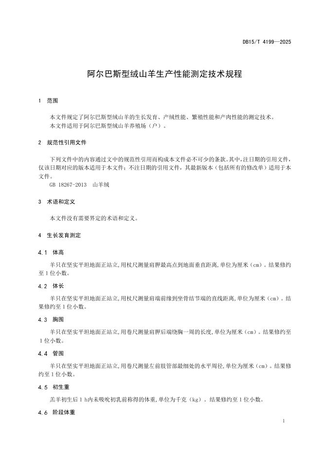 DB15/T 4199-2025 阿尔巴斯型绒山羊生产性能测定技术规程