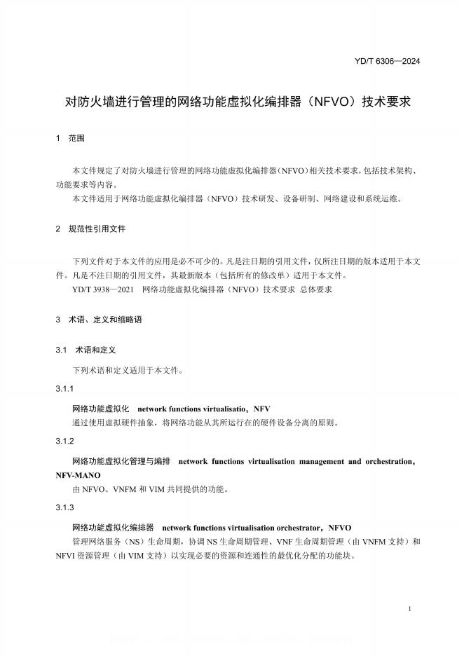 YD/T 6306-2024 对防火墙进行管理的网络功能虚拟化编排器(NFVO)技术要求