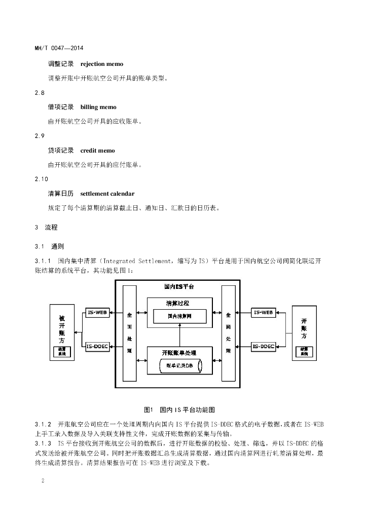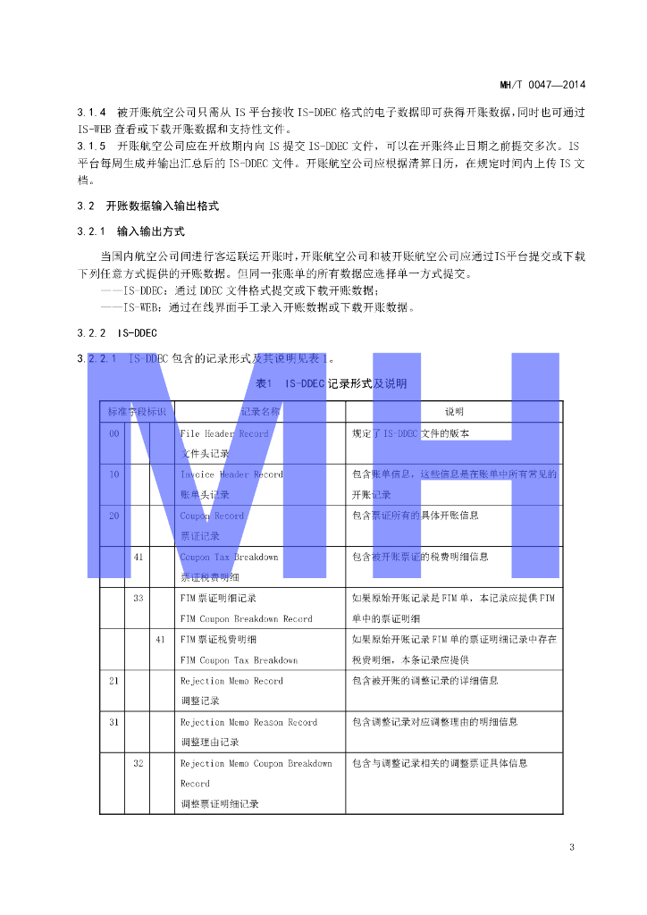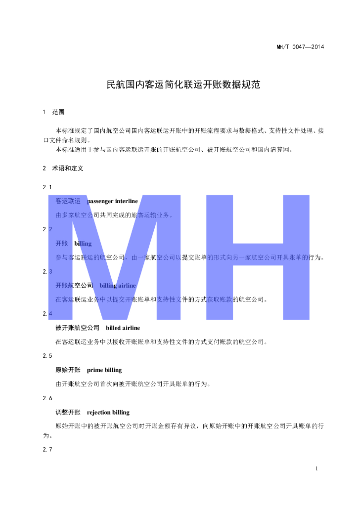 MH/T 0047-2014 民航国内客运简化联运开账数据规范