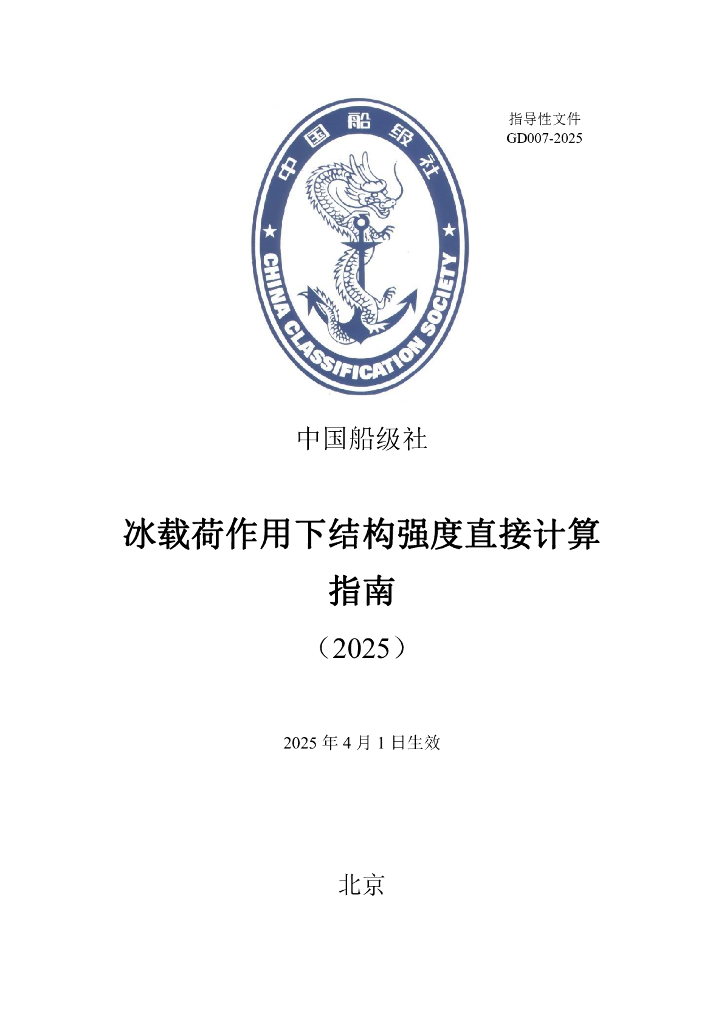中国船级社(CCS):冰载荷作用下结构强度直接计算指南2025