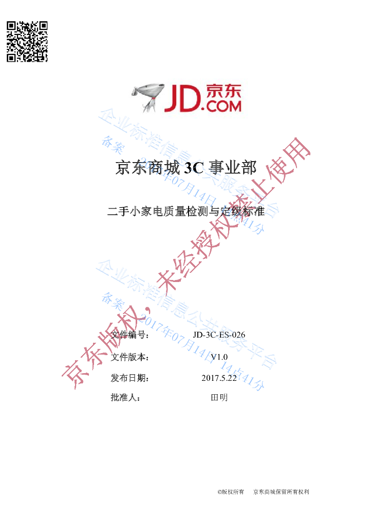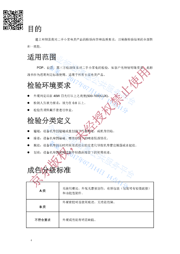 Q/DXJD3CES 026-2017 二手小家电分级检测标准