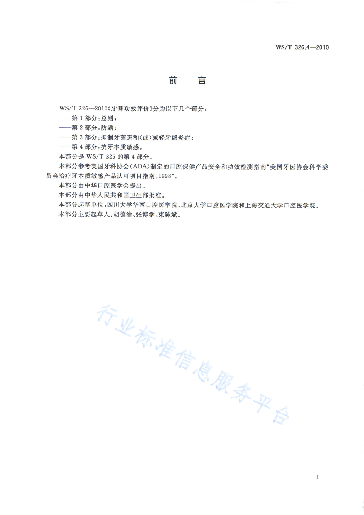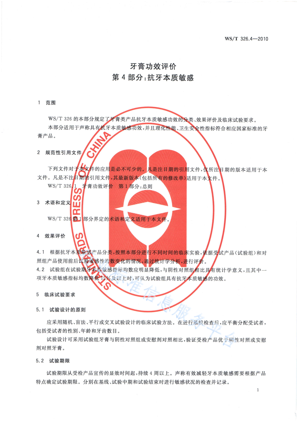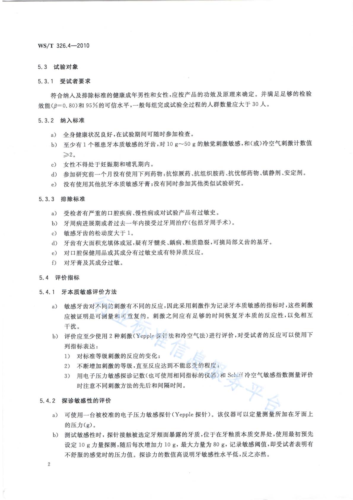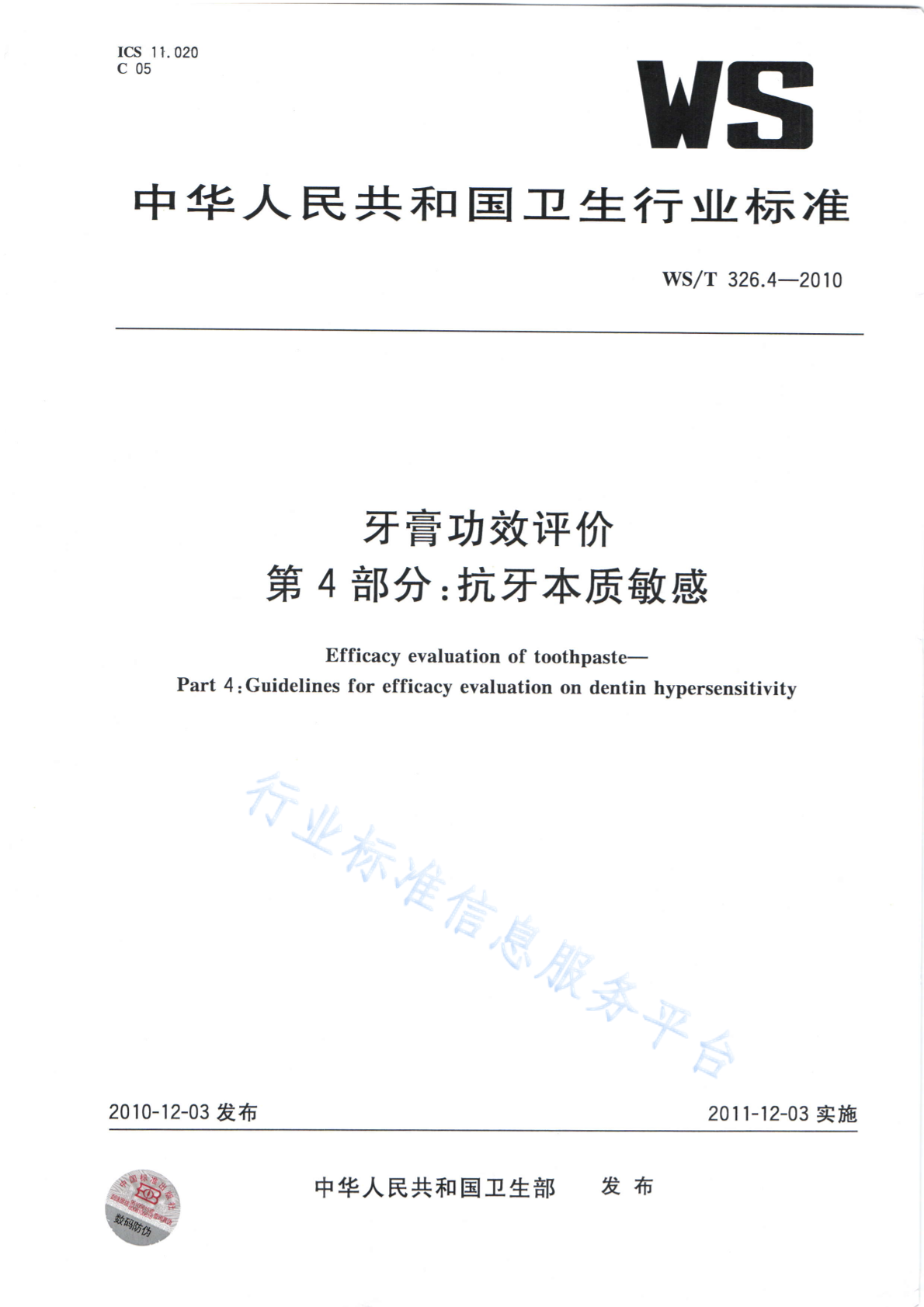 WS/T 326.4-2010 牙膏功效评价 第4部分:抗牙本质敏感