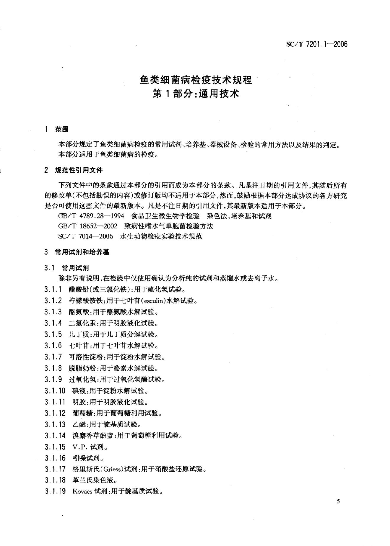 SC/T 7201.1-2006 鱼类细菌病检疫技术规程 第1部分:通用技术