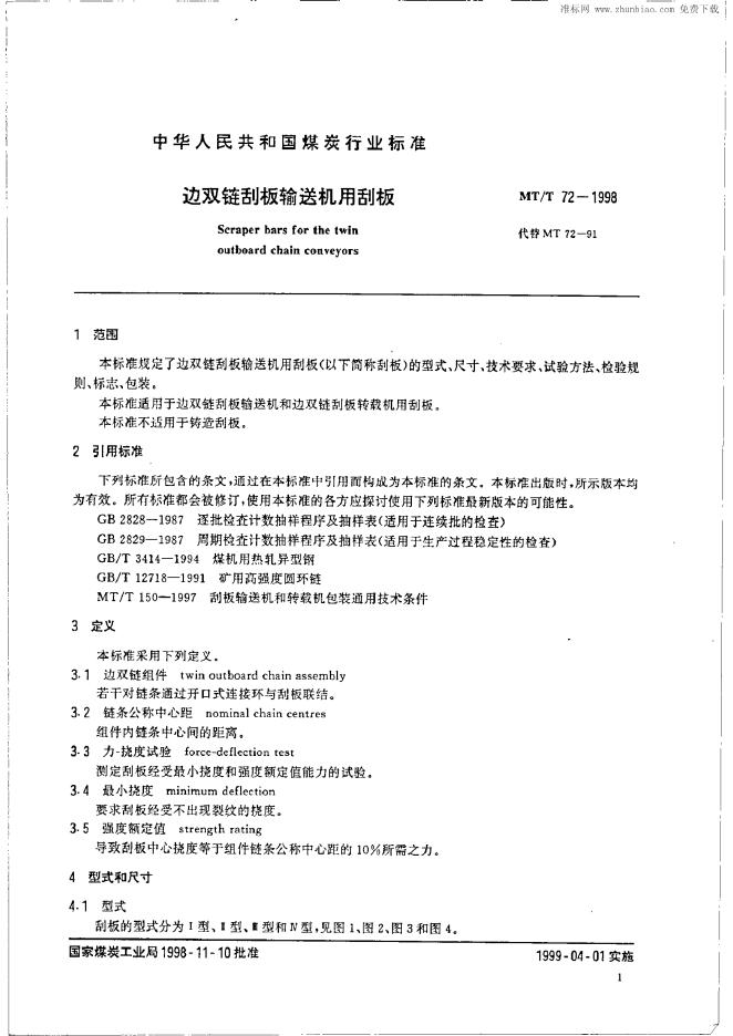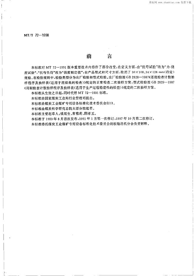 MT 72-1991 边双链刮板输送机用刮板