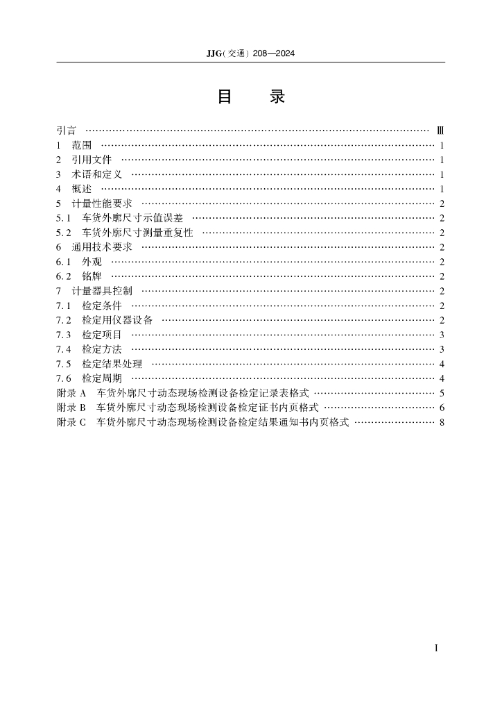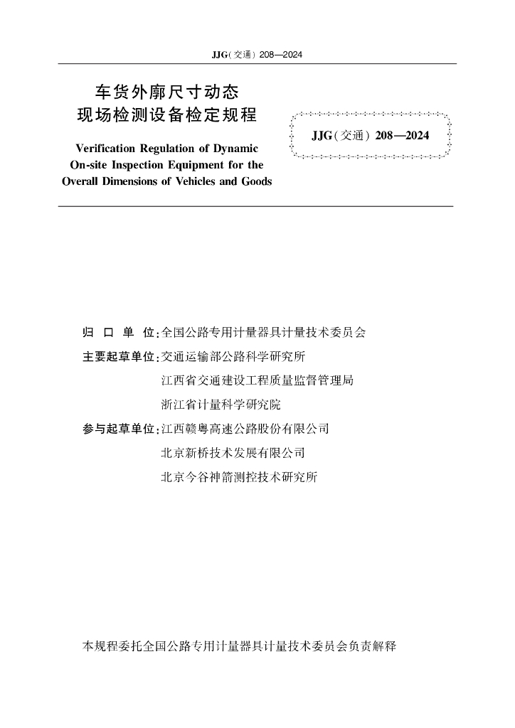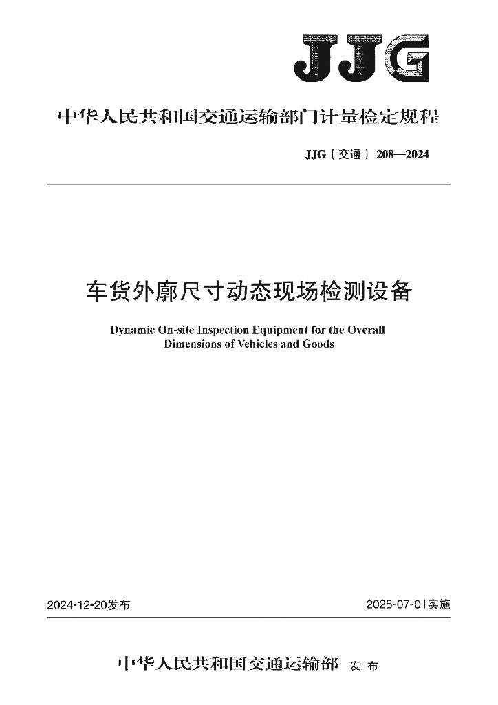 JJG(交通)208-2024 车货外廓尺寸动态现场检测设备