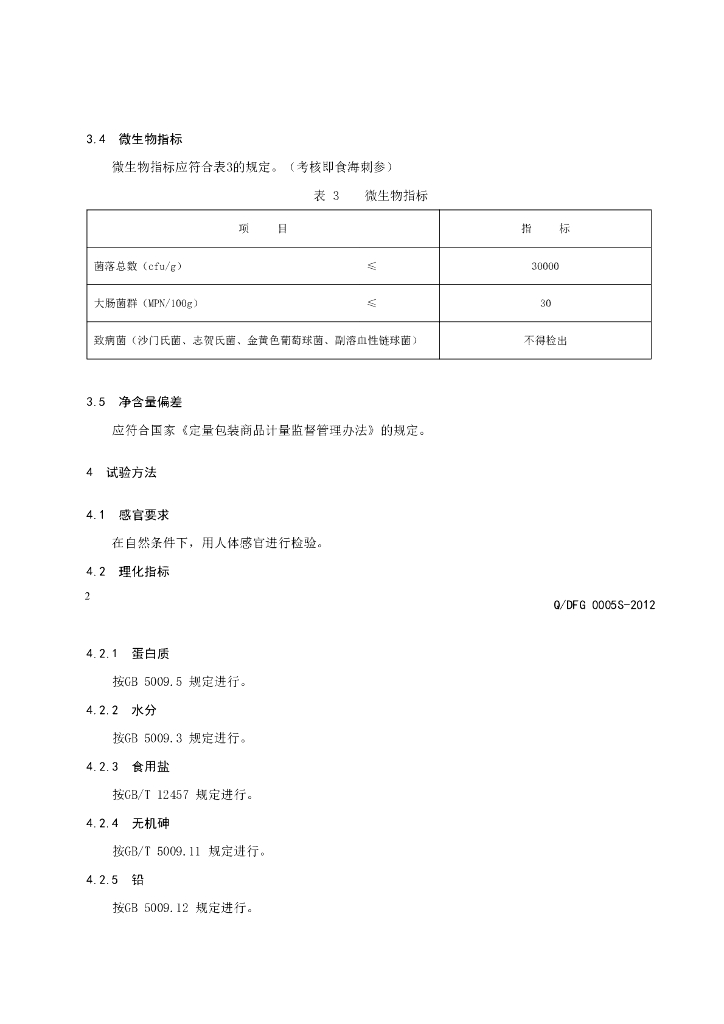 Q/DFG 0005S-2012 冻干海参