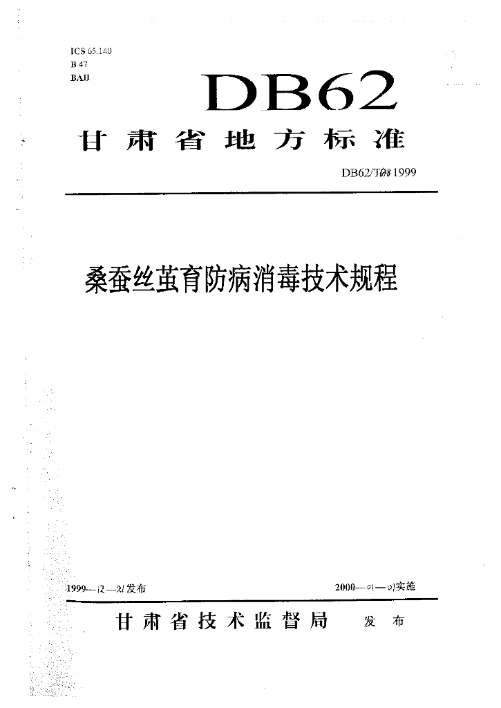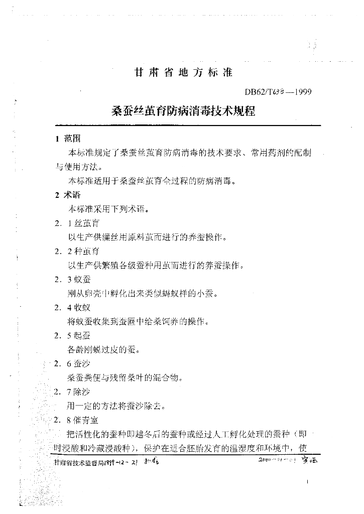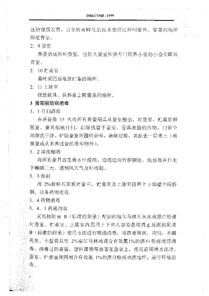 DB62/T 638-1999 桑蚕丝茧育防病消毒技术规程