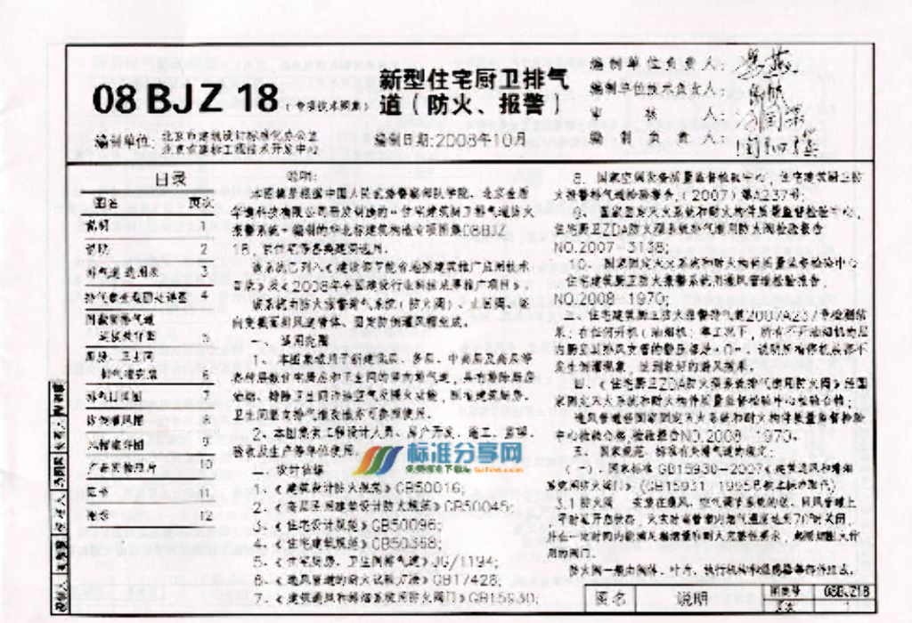 08BJZ18 新型住宅厨卫排气道(防火、报警)图集