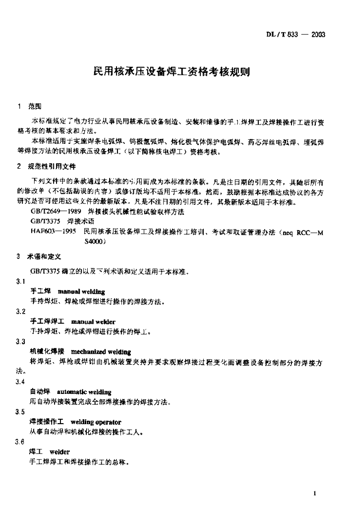 DL/T 833-2003 民用核承压设备焊工资格考核规则