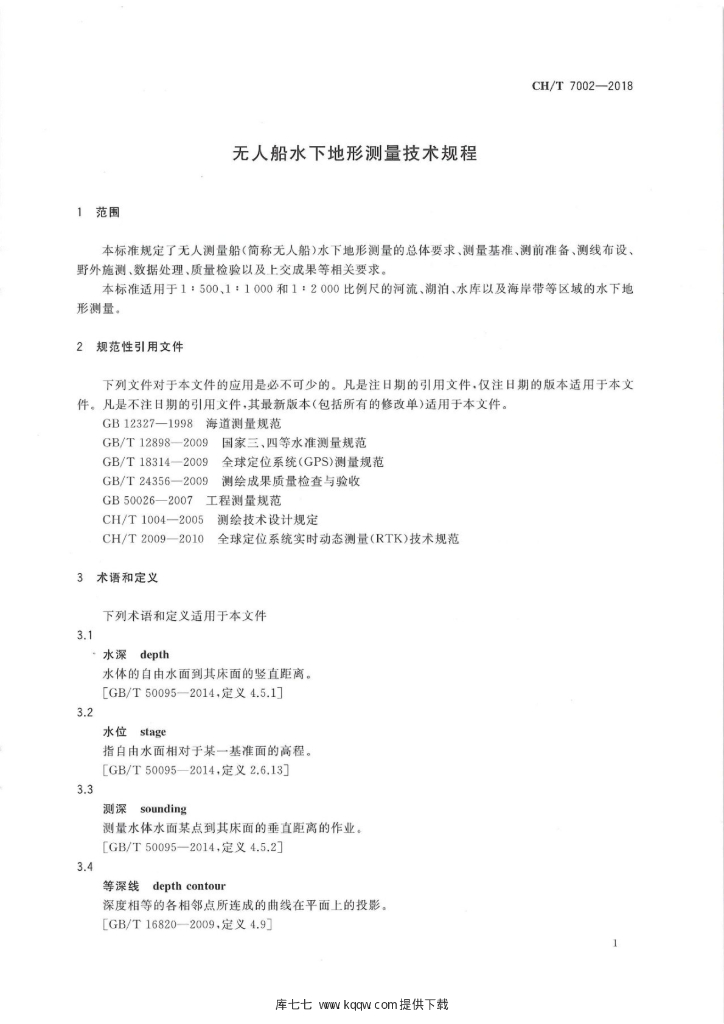 CH/T 7002-2018 无人船水下地形测量技术规程