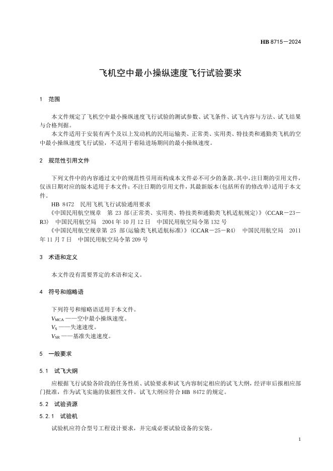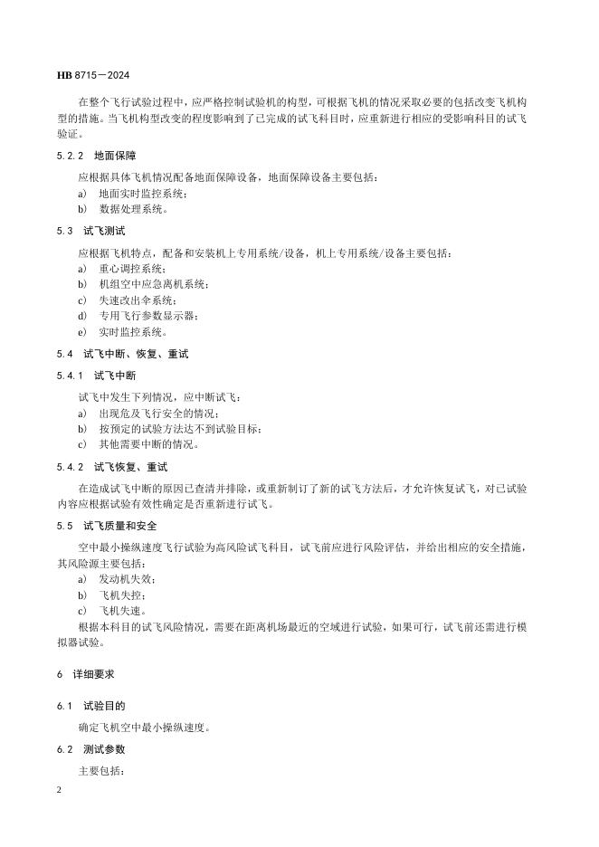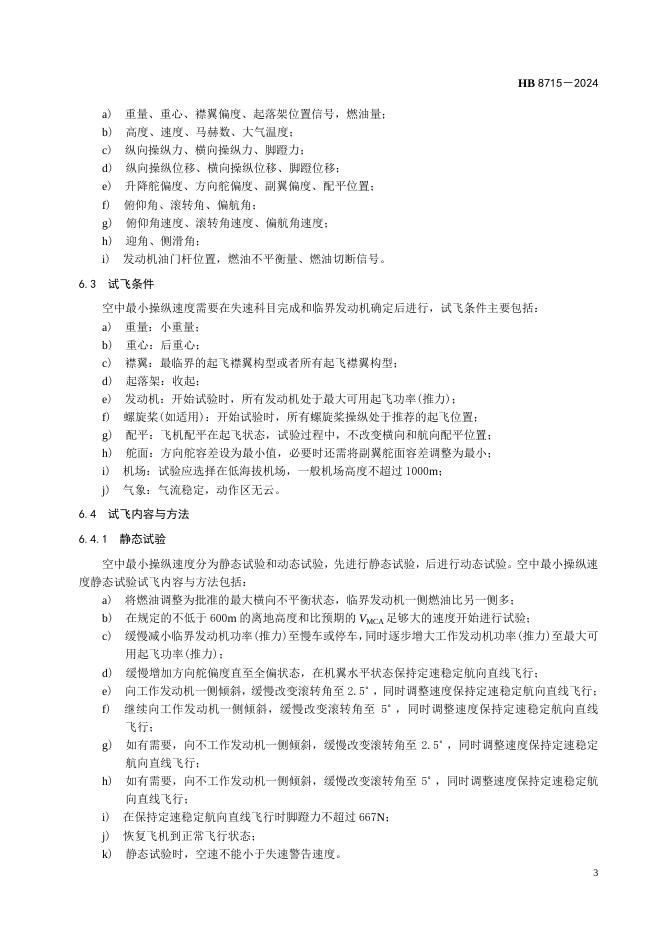 HB 8715-2024 飞机空中最小操纵速度飞行试验要求