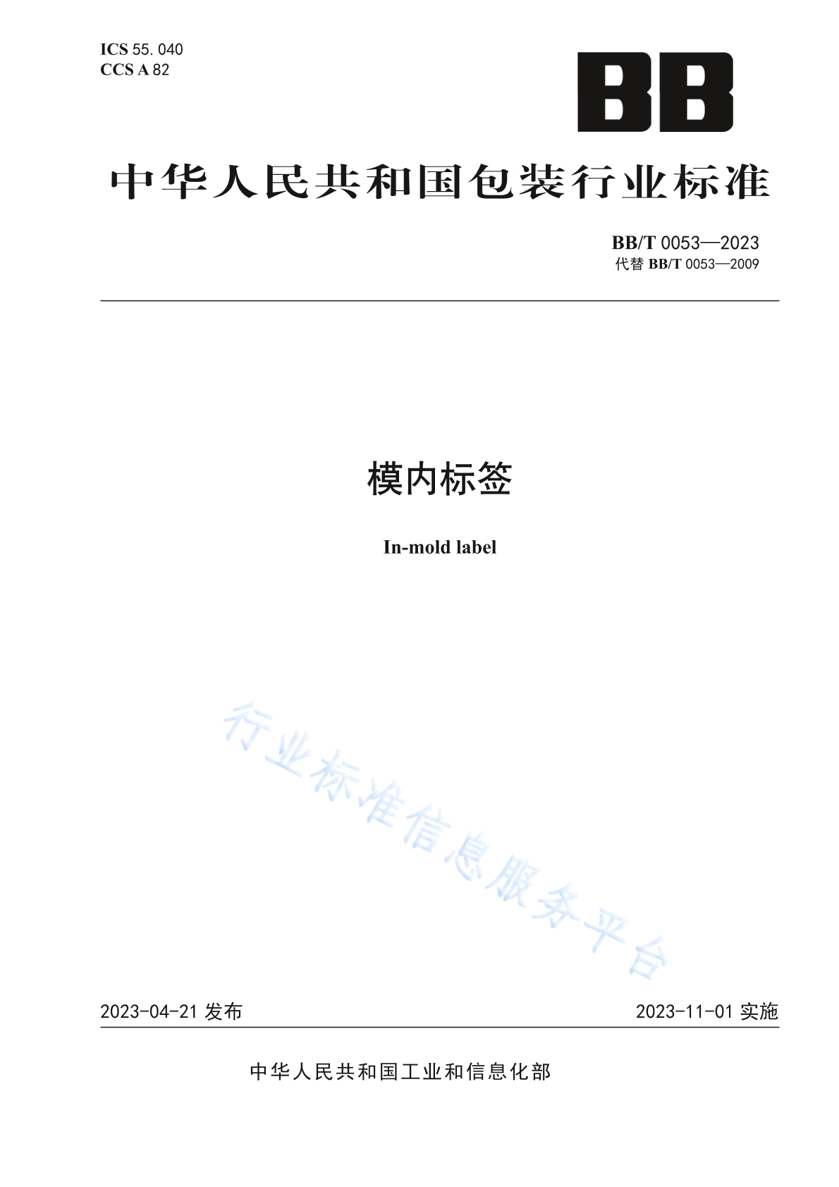- 代替标准:BB/T 0053-2009