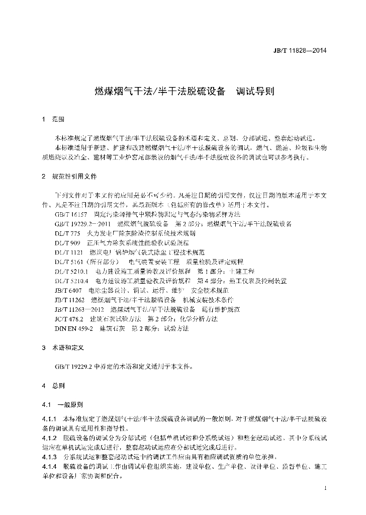 JB/T 11828-2014 燃煤烟气干法/半干法脱硫设备 调试导则