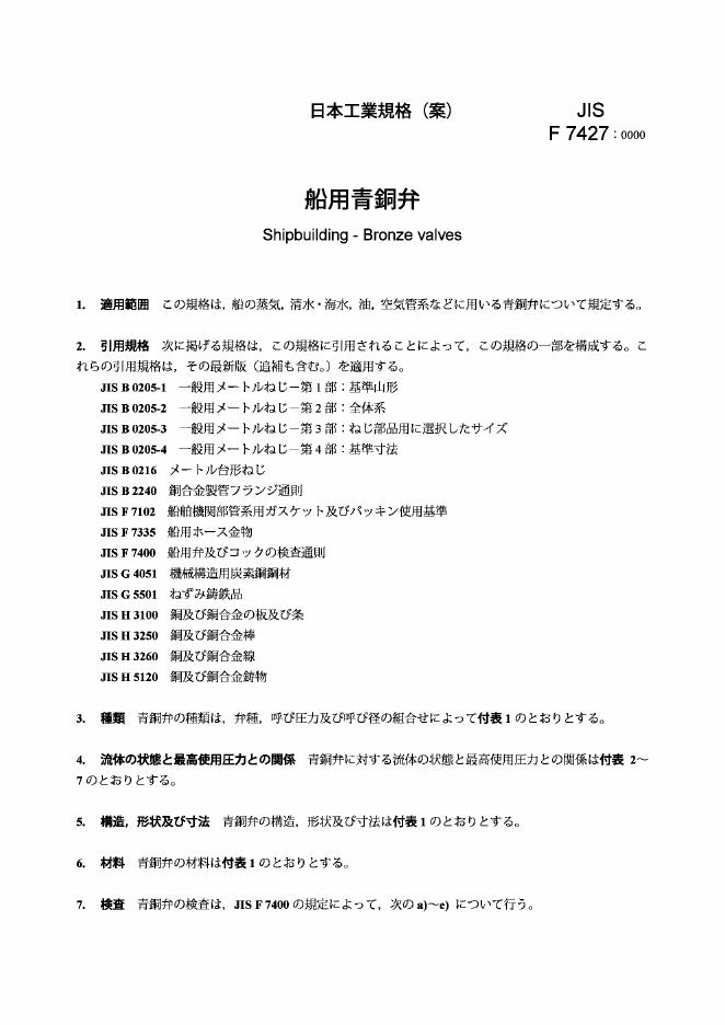 JIS F7427-2005 造船.青铜制阀门