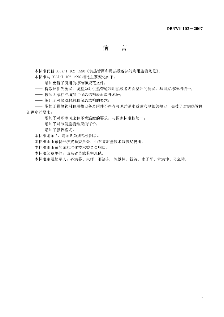 DB37/T 102-2007 供热管网和用热设备热能利用监测规范