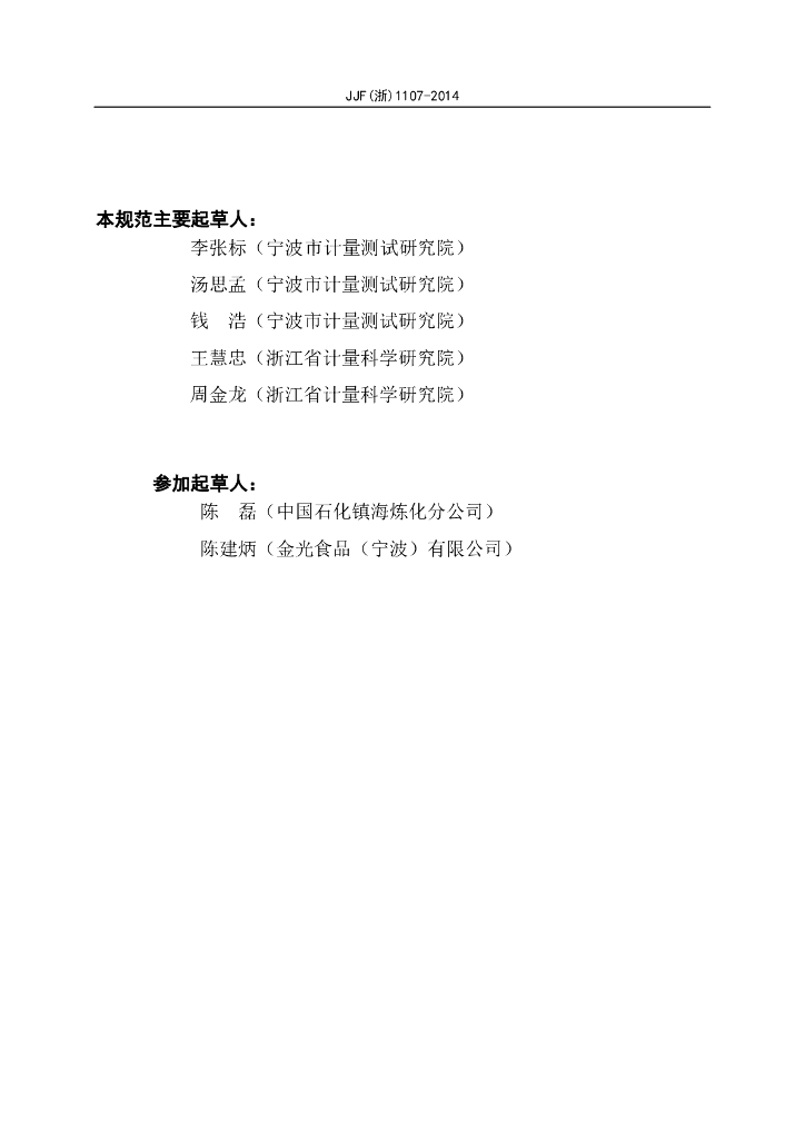 李张标(宁波市计量测试研究院)、汤思孟(宁波市计量测试研究院)、钱浩(宁波市计量测试研究院)、王慧忠(浙江省计量科学研究院)、周金龙(浙江省计量科学研究院)、陈磊(中国石化镇海炼化分公司)、陈建炳(金光食品(宁波)有限公司)