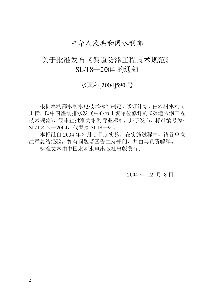 SL 18-2004 渠道防渗工程技术规范
