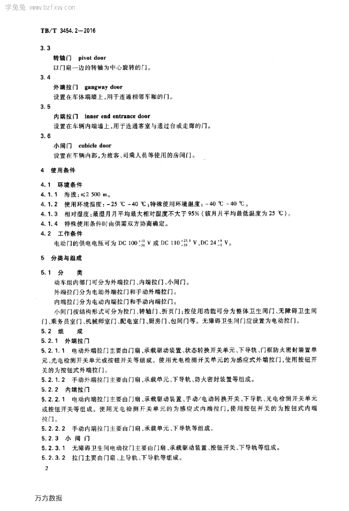 TB/T 3454.2-2016 动车组车门 第2部分:内部门