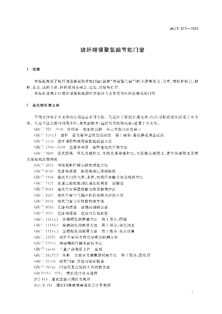 JG/T 571-2019 玻纤增强聚氨酯节能门窗
