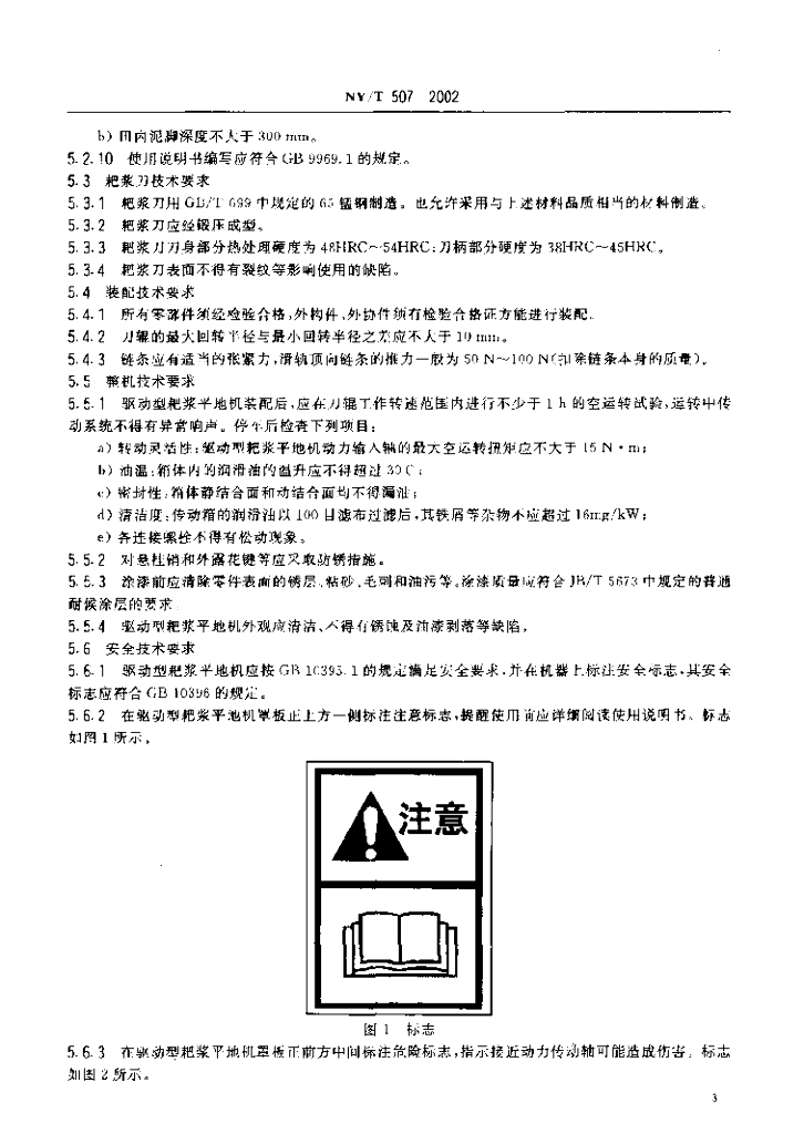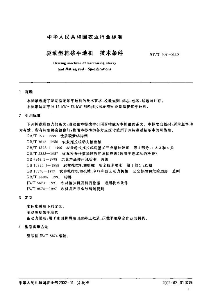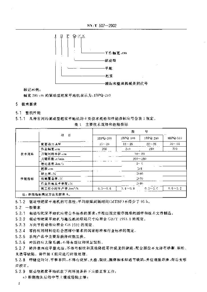 NY/T 507-2002 驱动型耙浆平地机 技术条件