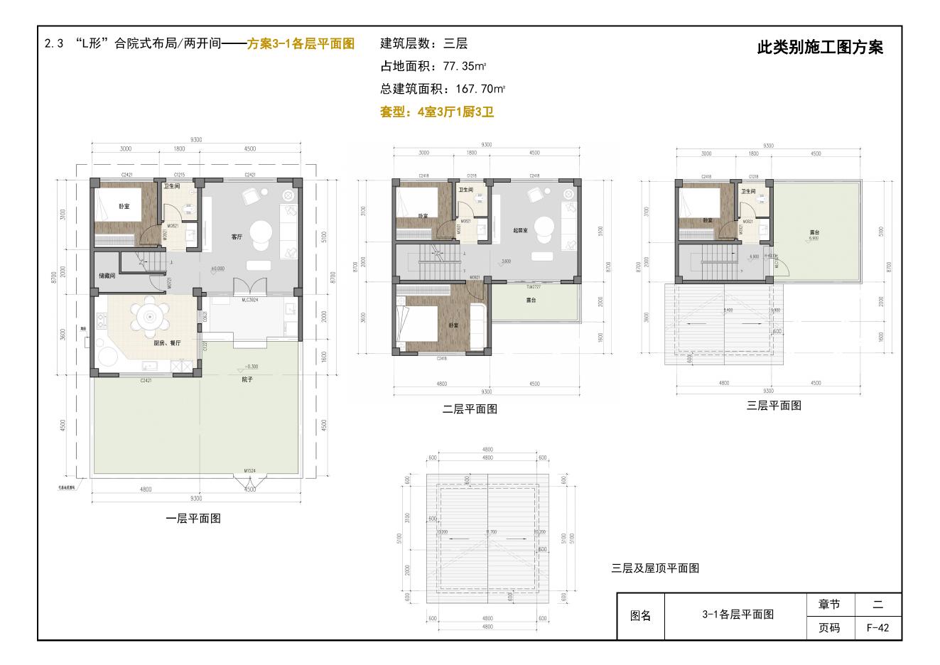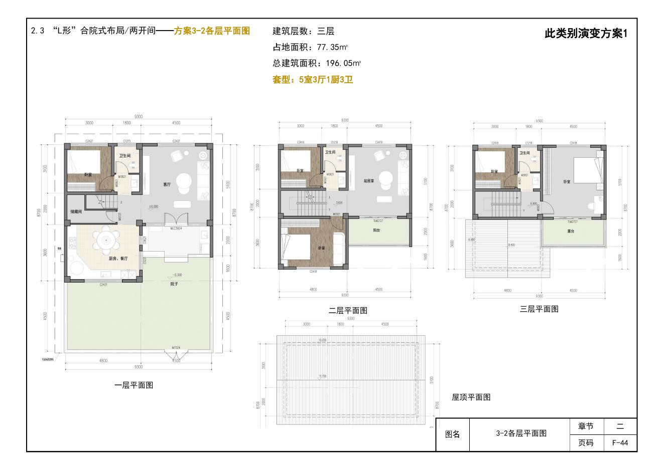 昆明市现代宜居农房设计通用图集 施工图图册(三)“L形”合院式布局/两开间