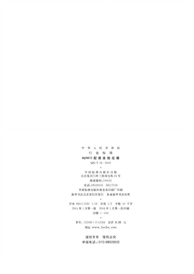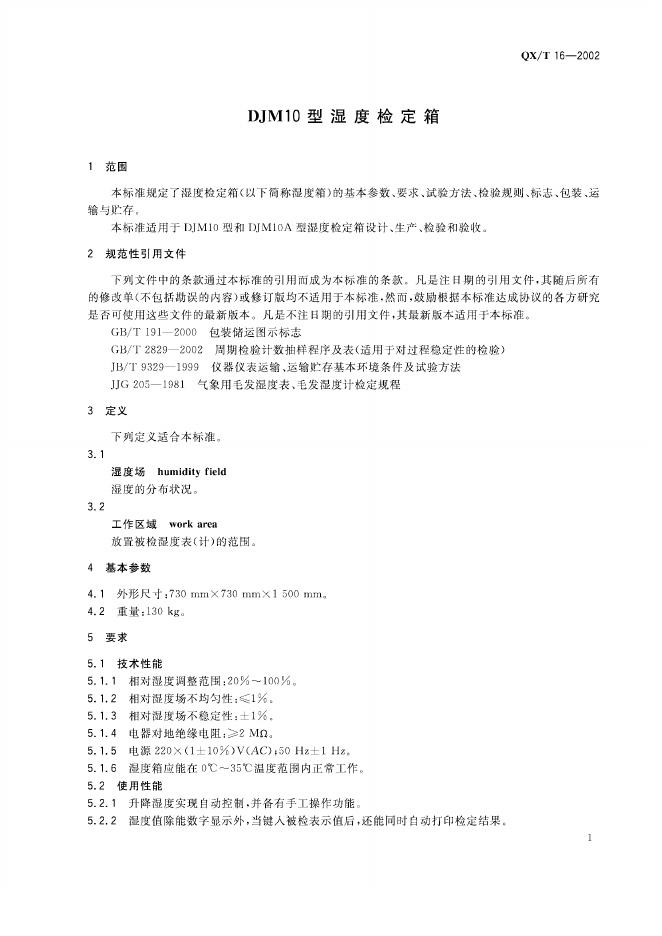 QX/T 16-2002 DJM10型湿度检定箱
