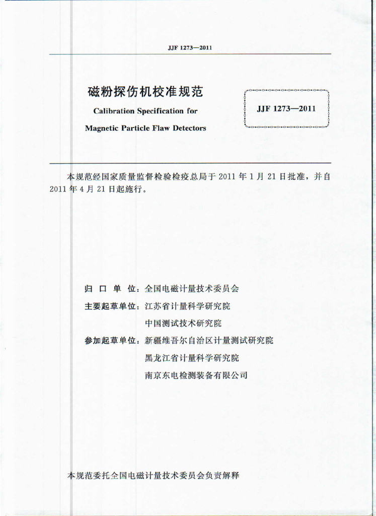 江苏省计量科学研究院、中国测试技术研究院、新疆维吾尔自治区计量测试研究院、黑龙江省计量科学研究院、南京东电检测装备有限公司