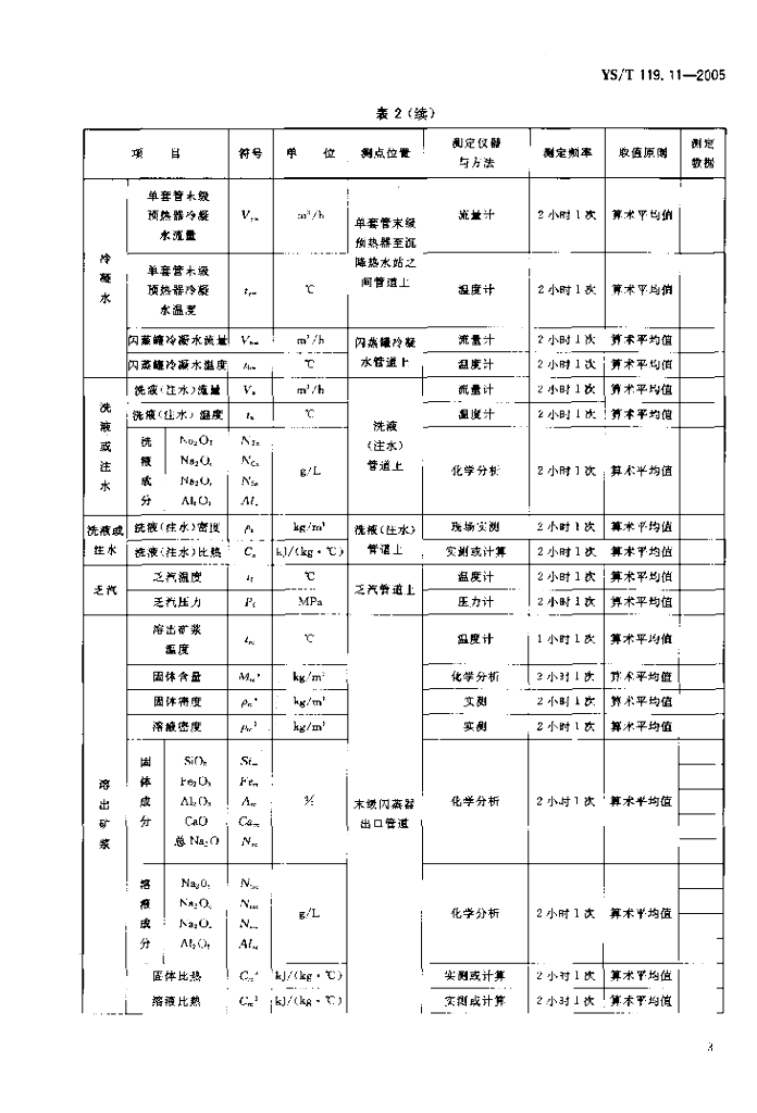 YS/T 119.11-2005 氧化铝生产专用设备热平衡测定与计算方法 第11部分:单套管预热-高压釜溶出系统