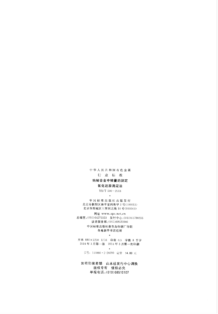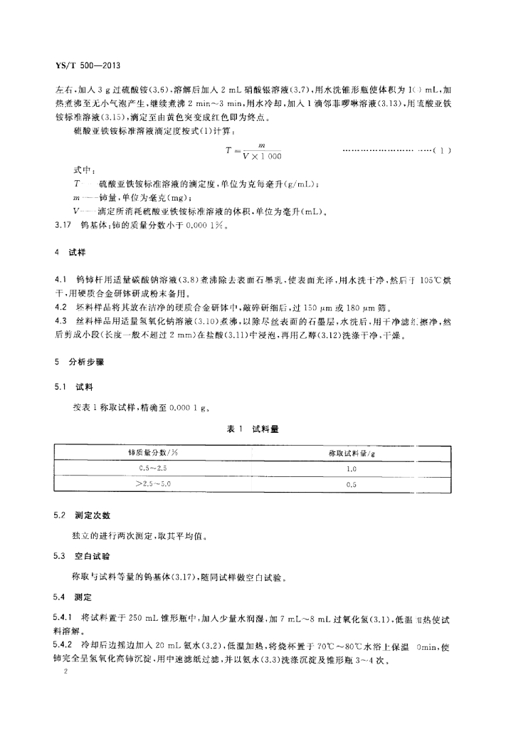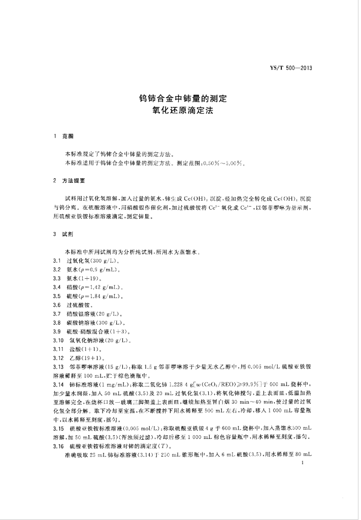 YS/T 500-2013 钨铈合金中铈量的测定氧化还原滴定法