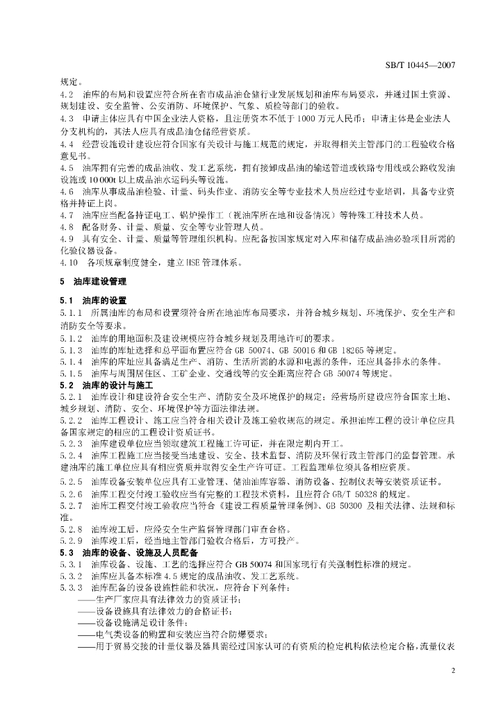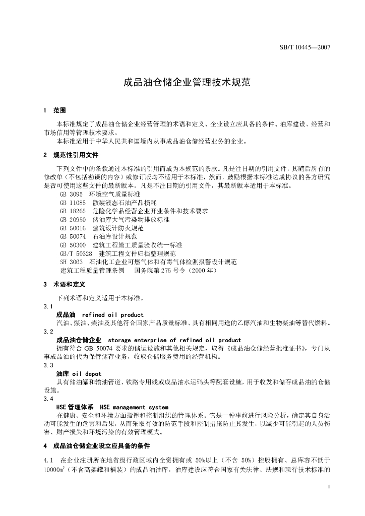 SB/T 10445-2007 成品油仓储企业管理技术规范