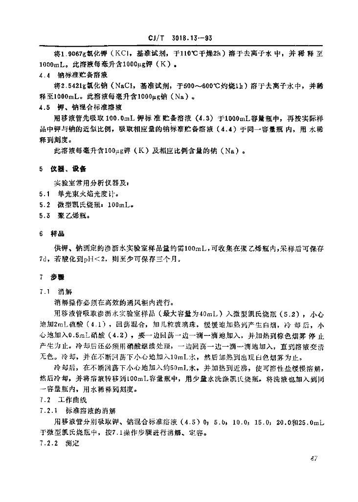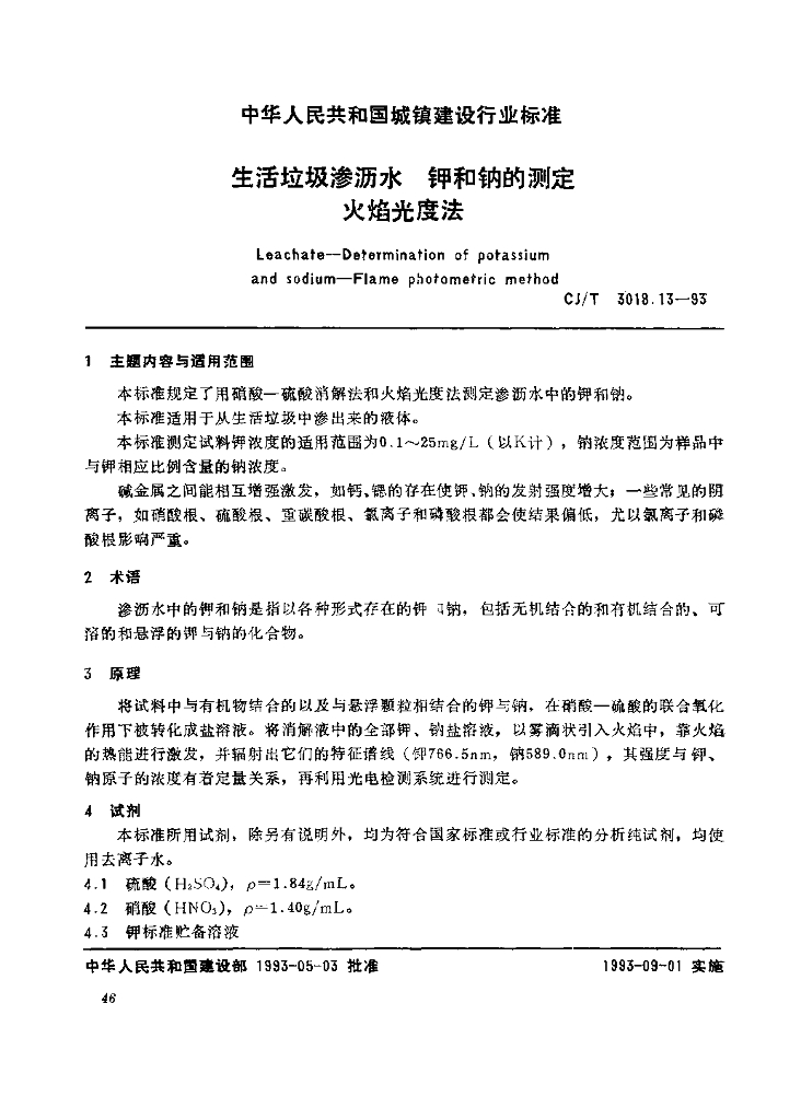 CJ/T 3018.13-1993 生活垃圾渗沥水 钾和钠的测定 火焰光度法