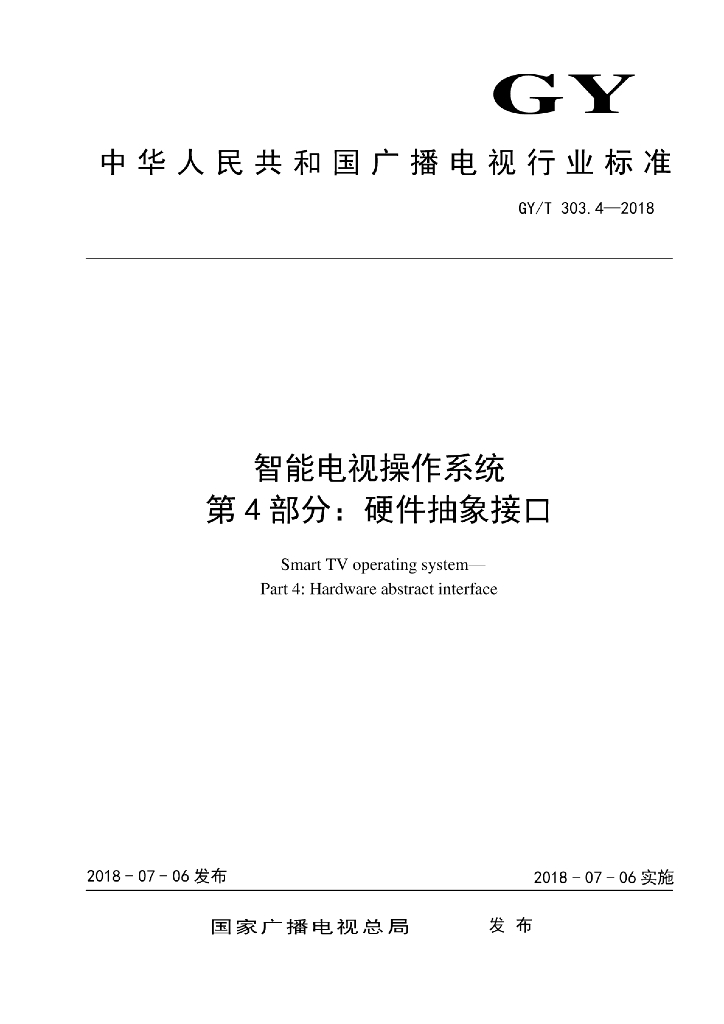 GY/T 303.4-2018 智能电视操作系统 第4部分:硬件抽象接口