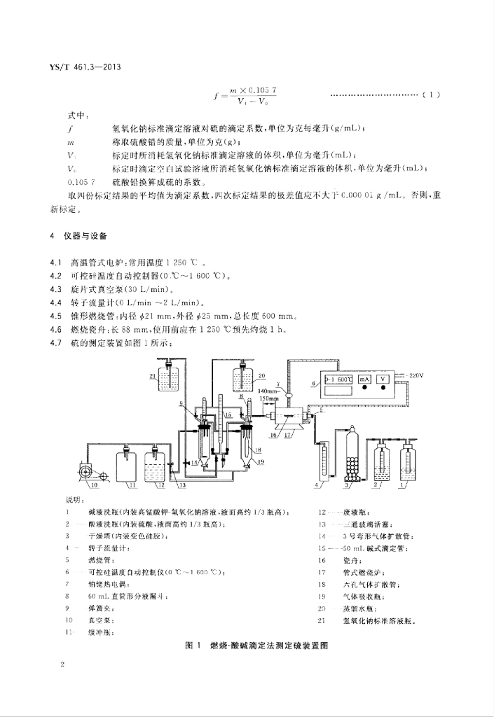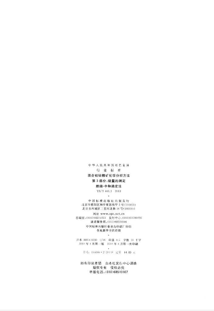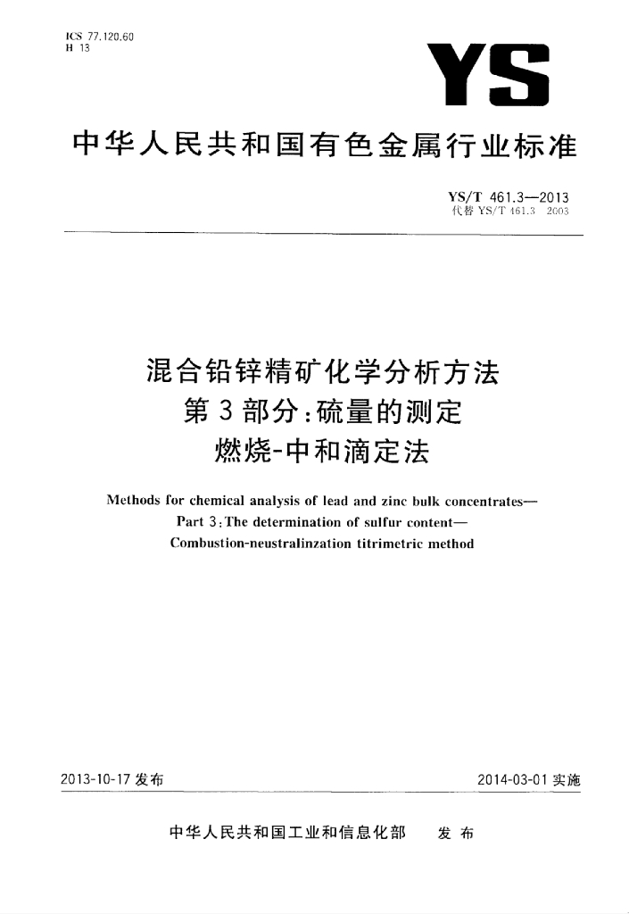YS/T 461.3-2013 混合铅锌精矿化学分析方法 第3部分:硫量的测定燃烧-中和滴定法