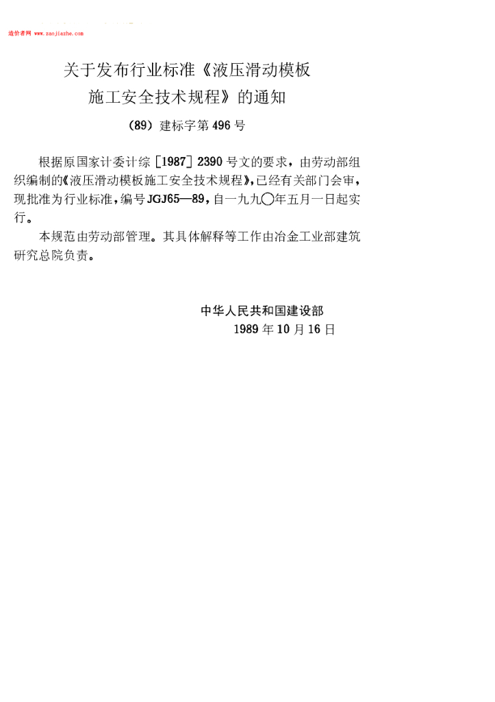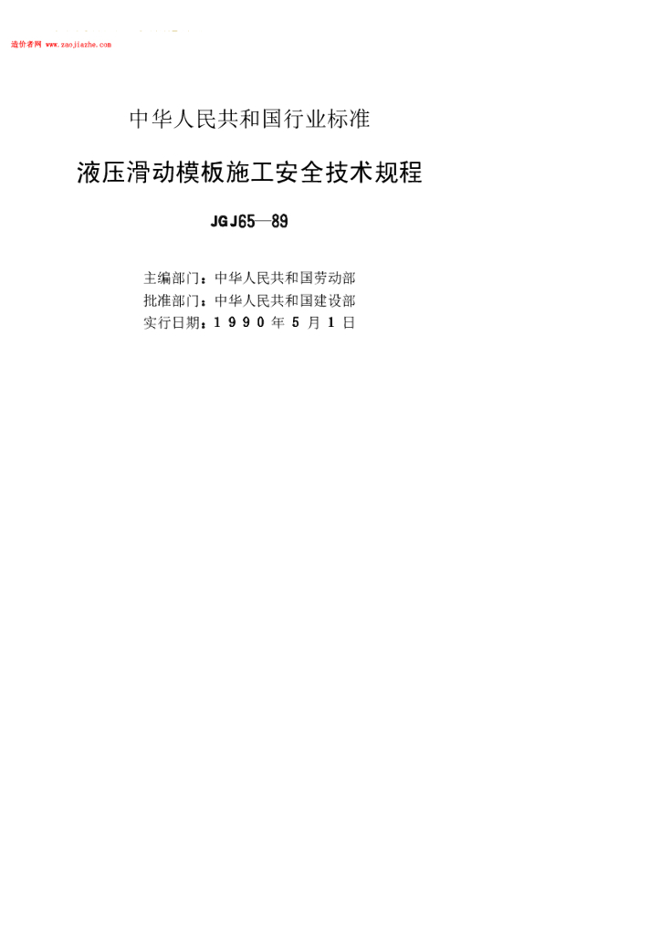 JGJ 65-1989 液压滑动模板施工安全技术规程