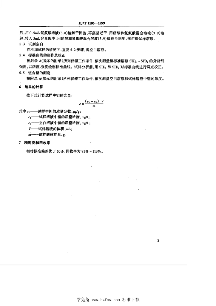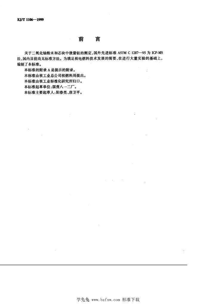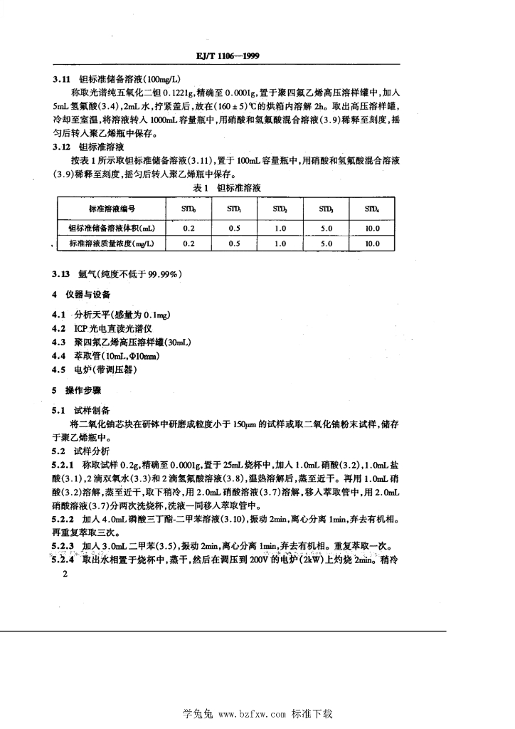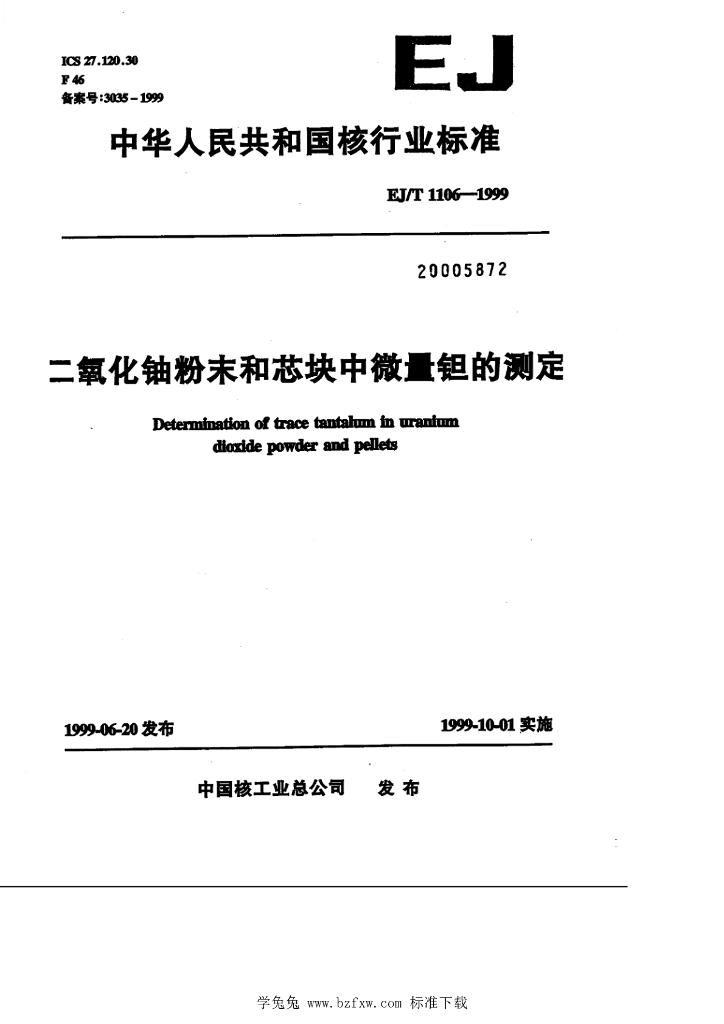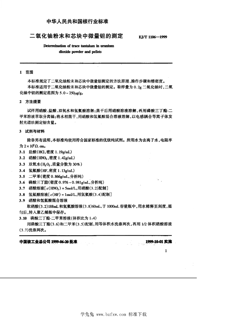 EJ/T 1106-1999 二氧化铀粉末和芯块中微量钽的测定