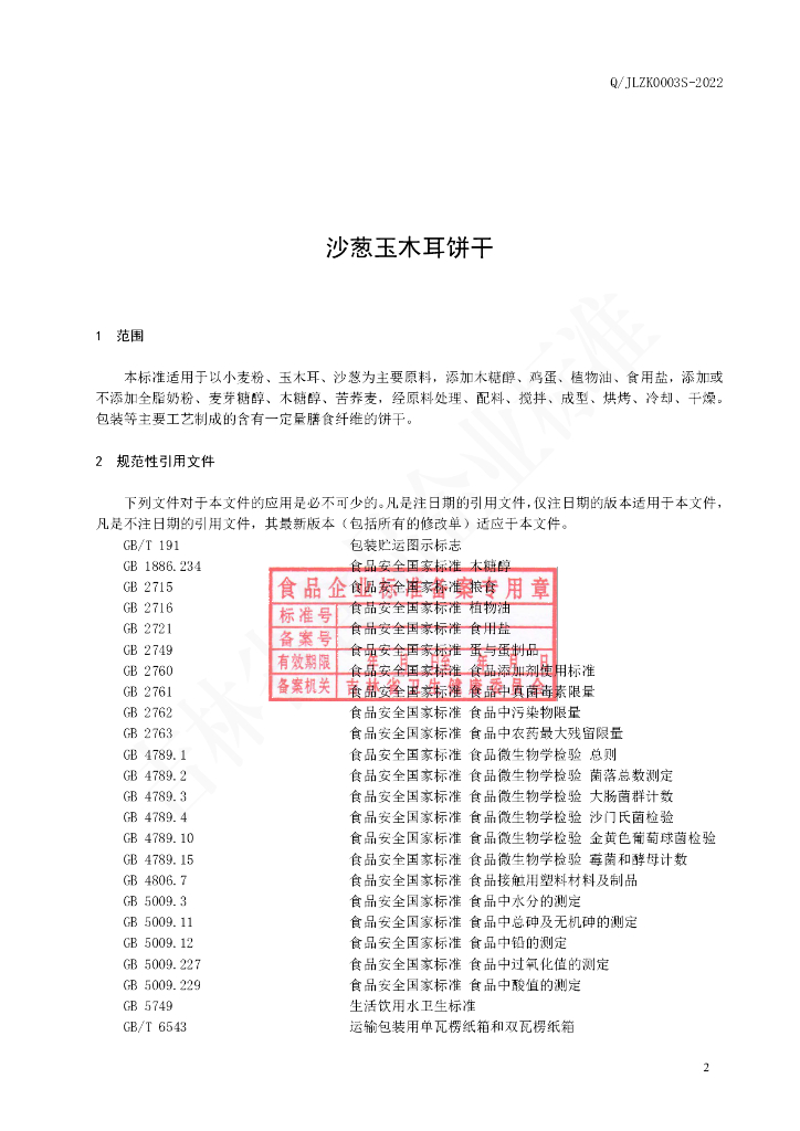 Q/JLZK 0003S-2022 沙葱玉木耳饼干