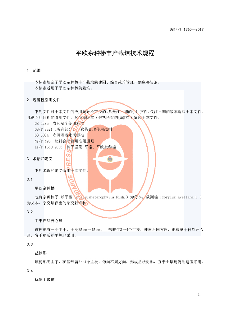 DB14/T 1365-2017 平欧杂种榛丰产栽培技术规程