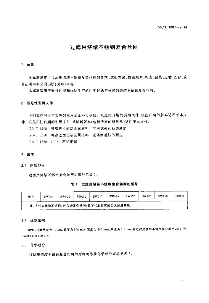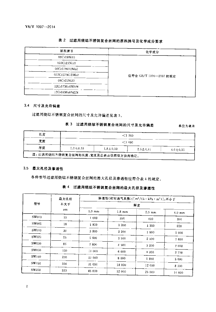 YS/T 1007-2014 过滤用烧结不锈钢复合丝网