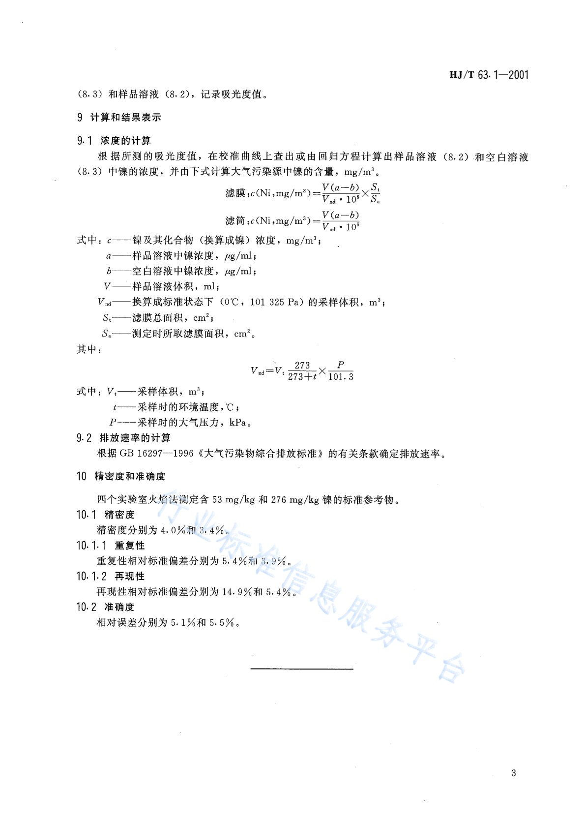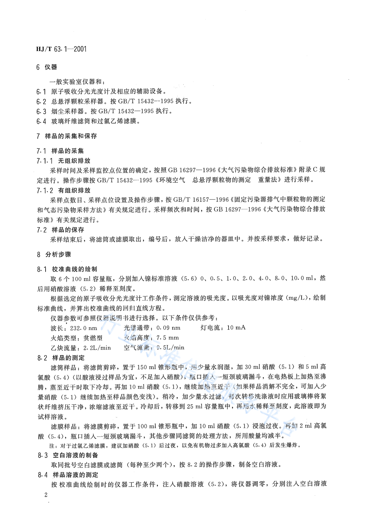 HJ/T 63.1-2001 大气固定污染源 镍的测定 火焰原子吸收分光光度法
