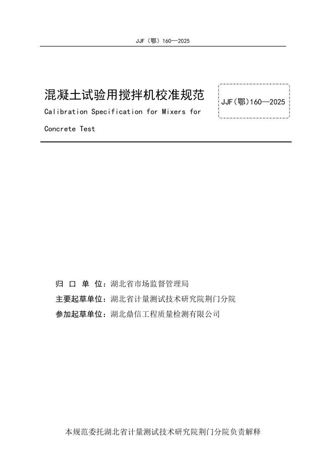 JJF(鄂)160-2025 混凝土试验用搅拌机省规范