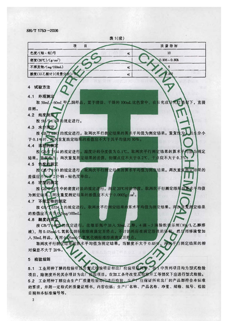 SH/T 1753-2006 工业用仲丁醇
