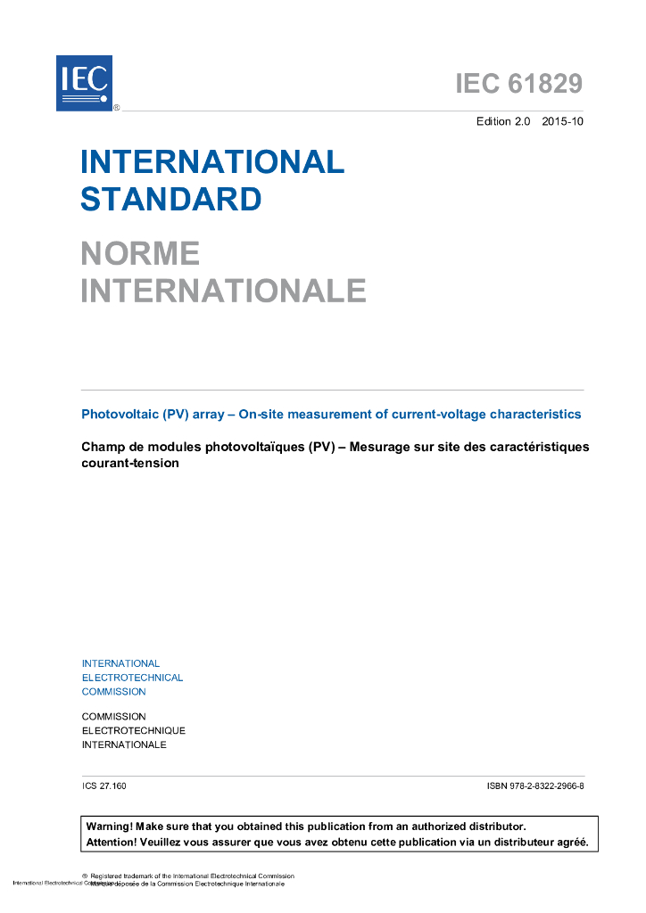 IEC 61829-2015 光伏(PV)阵列 电流电压特性的现场测量