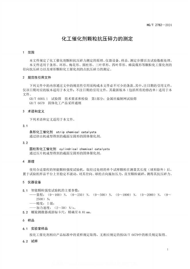 HG/T 2782-2024 化工催化剂颗粒抗压碎力的测定