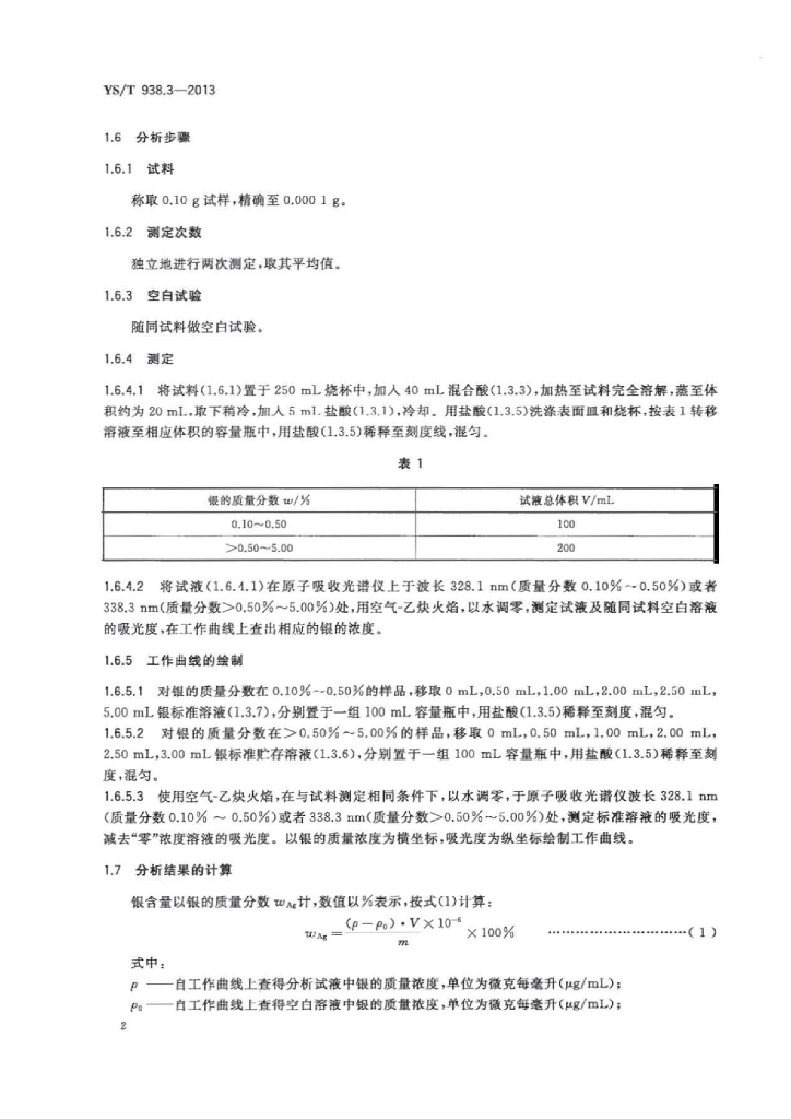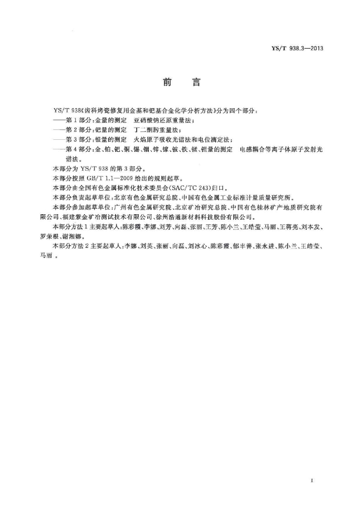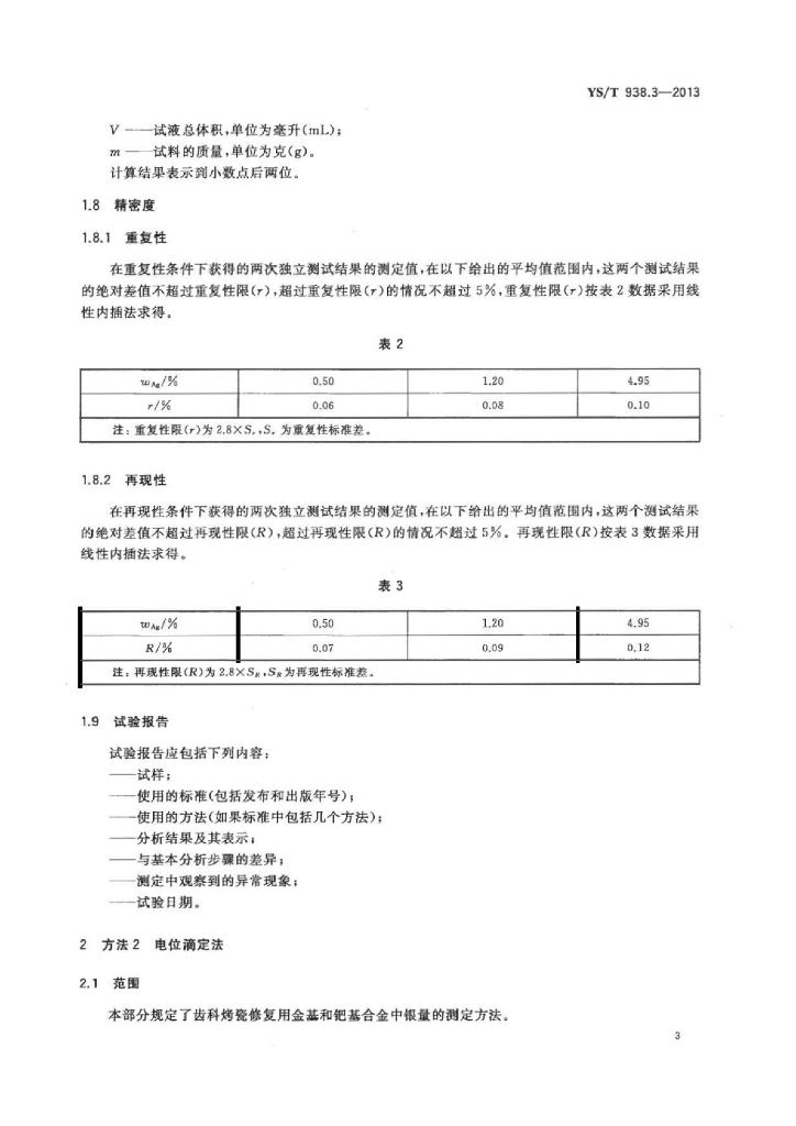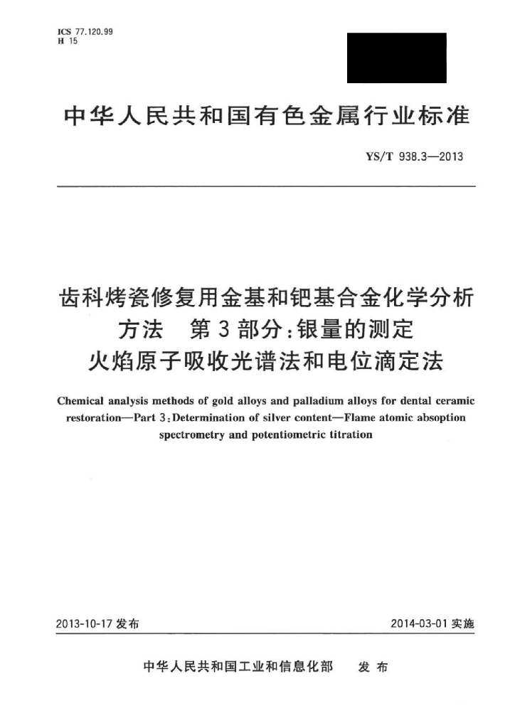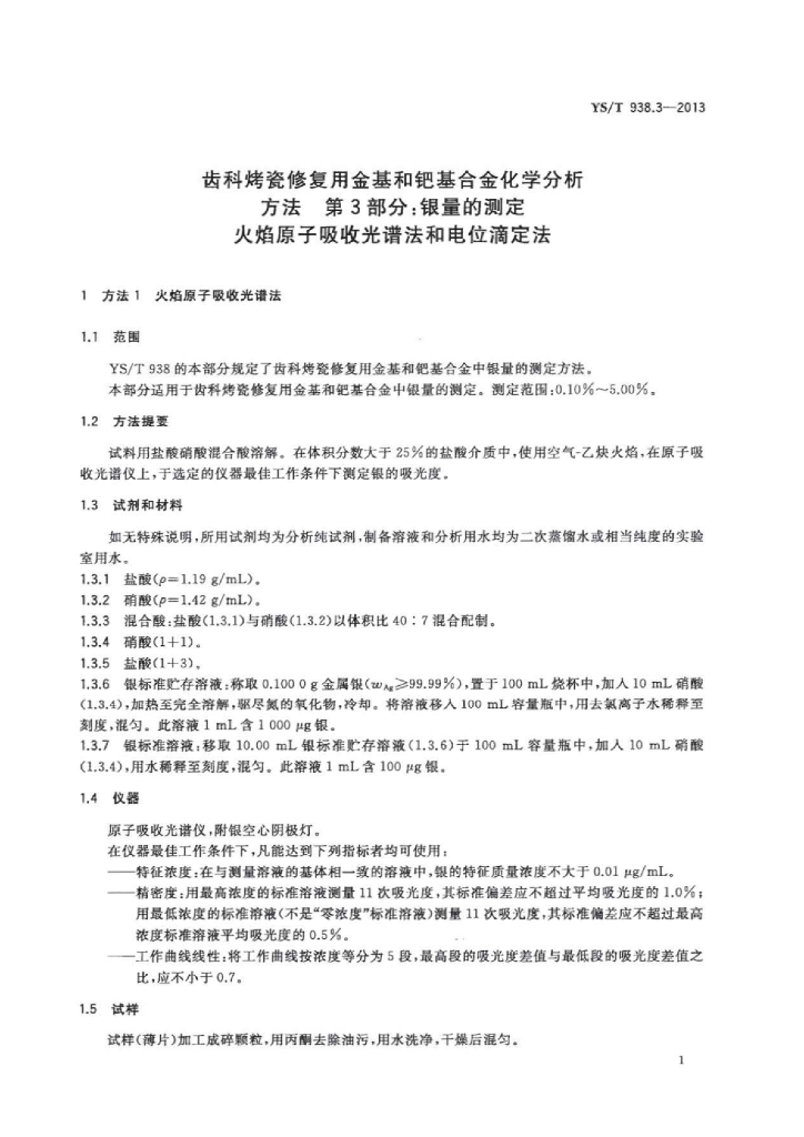 YS/T 938.3-2013 齿科烤瓷修复用金基和钯基合金化学分析方法 第3部分:银量的测定火焰原子吸收光谱法和电位滴定法