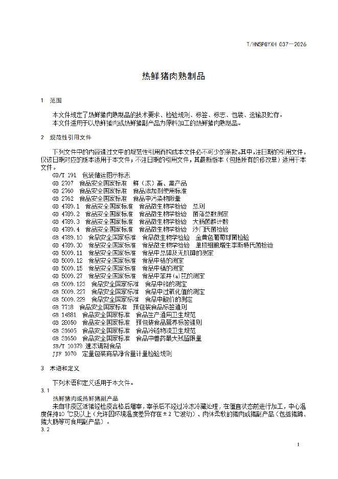 T/HNSPGYXH 037-2026 热鲜猪肉熟制品